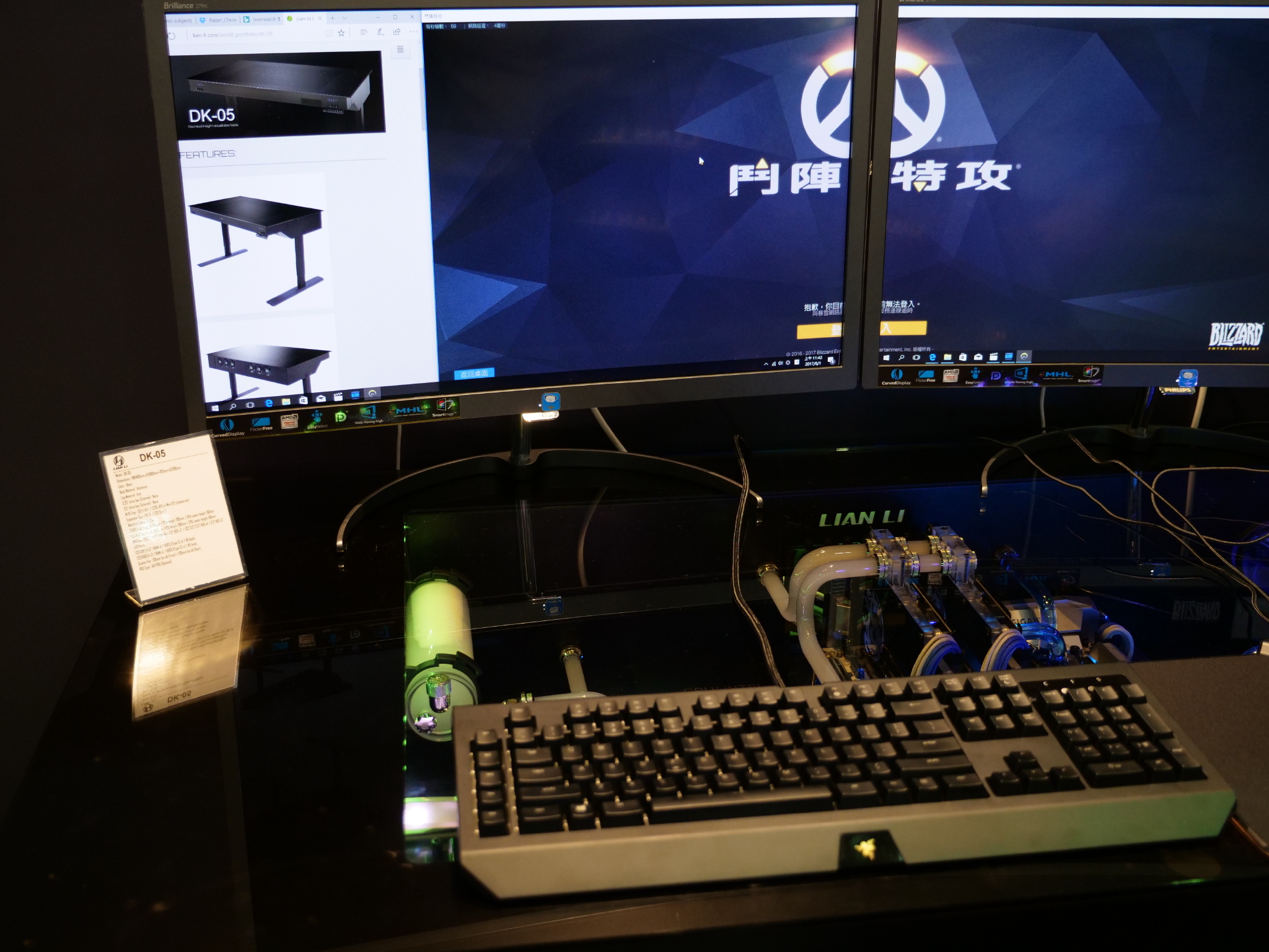 Some of my favourite PC mods over the years have been desk mods. Fortunately, Lian Li has been making it easier for people to put together a desk build themselves with products like the DK-05. This is a large desk with a glass top. You build your PC inside, throw in some liquid cooling and you're good to go. This particular version of the desk is also motorised, so you can adjust the height as you see fit, whether you want to sit down or stand for a bit.