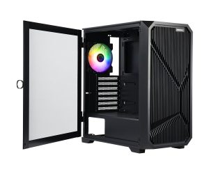 The ENERPAZO EP237 mini-tower PC case provides efficient cooling support and expandability. It is compatible with an ATX motherboard and allows for the installation of an AIO cooler with a radiator measuring up to 360mm in length and 38mm in thickness. The ENERPAZO EP237 comes equipped with one ARGB fan, seven reusable PCIe slots, and a magnetic transparent full-view tempered glass side panel.