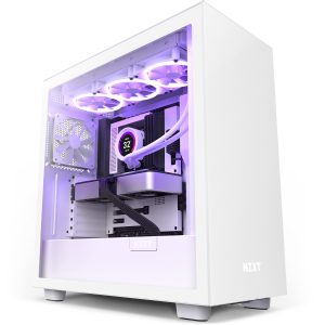 The H7 and H7 Flow come in: white and black, all white, and all black. The H7 Elite is available either in all black or all white with a matching glass panel, sporting a tinted panel for black cases and a clear panel with white. The standard H7 is your standard case, while the H7 Flow adds a perforated front panel for even better cooling, particularly for high-end components. Finally, the H7 Elite has all the bells and whistles, including RGB fans and a tempered glass panel.