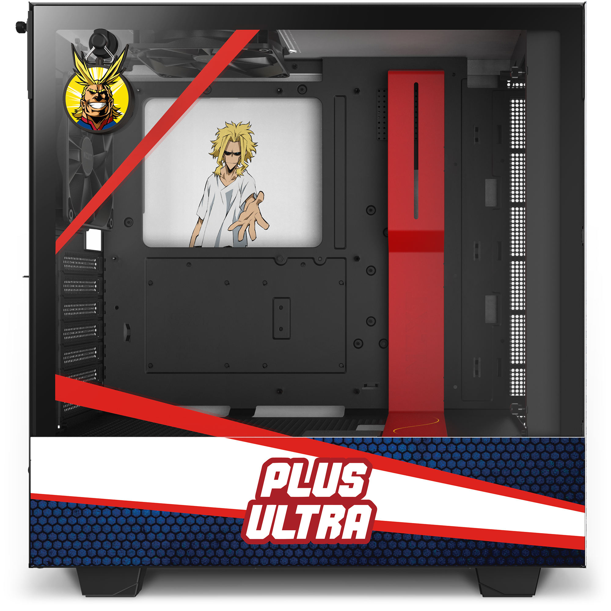 The NZXT CRFT 10 H510i All Might PC case launches today, celebrating the #1 hero and symbol of peace from the My Hero Academia manga and anime series. The case features a custom armour, with All Might appearing on one side panel, and the My Hero Academia logo appearing on the front of the case.