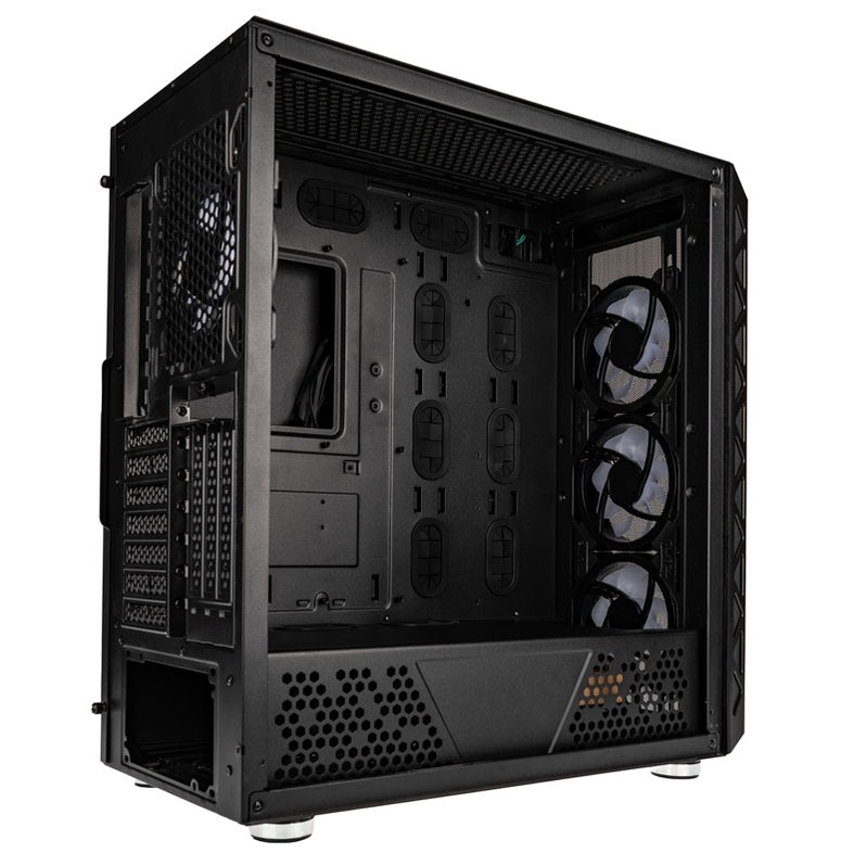 The front panel of the case has a mesh design to improve airflow, and you will find mesh on top of the case too. There is also a tempered glass side panel and a dedicated PSU shroud to help showcase your build. Finally, the top panel includes two USB 3.0 ports, a USB 2.0 port, a USB 3.2 Type C port, as well as power and LED control buttons and audio jacks.