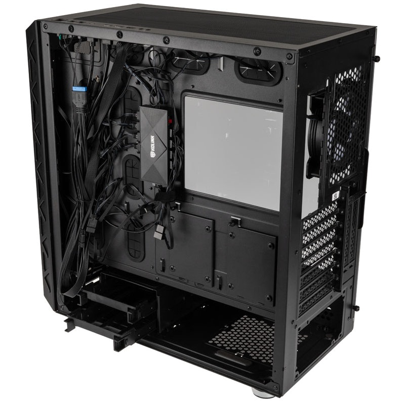 Out of the box, the Citadel Mesh arrives with four 120mm Kolink Umbra ARGB PWM fans pre-installed – three mounted in the front and an additional one in the rear. You can swap these out for 140mm fans if you see fit. As far as liquid cooling goes, you can fit up to a 420mm radiator in the front, up to a 360mm radiator in the top and up to a 140mm radiator at the rear of the case.