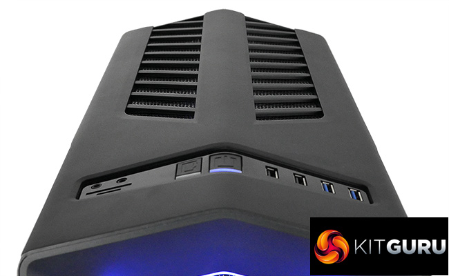 The top panel has front connections which has a wide assortment such as USB ports, power and reset switches and a memory card reader, which I was surprised to see. Keen observers will note there is a button ‘missing' from here that was used to switch between colours in the original P7 – I will explain why it is missing a little later.