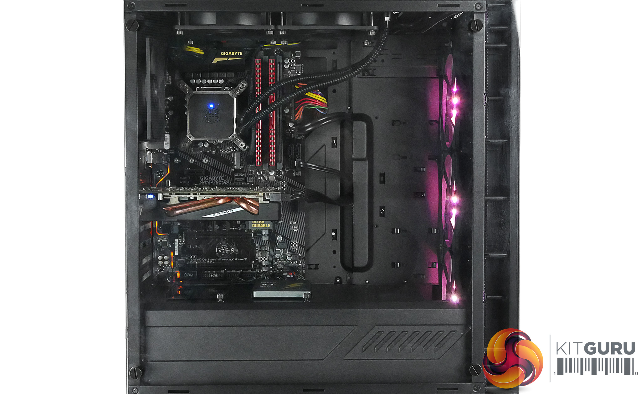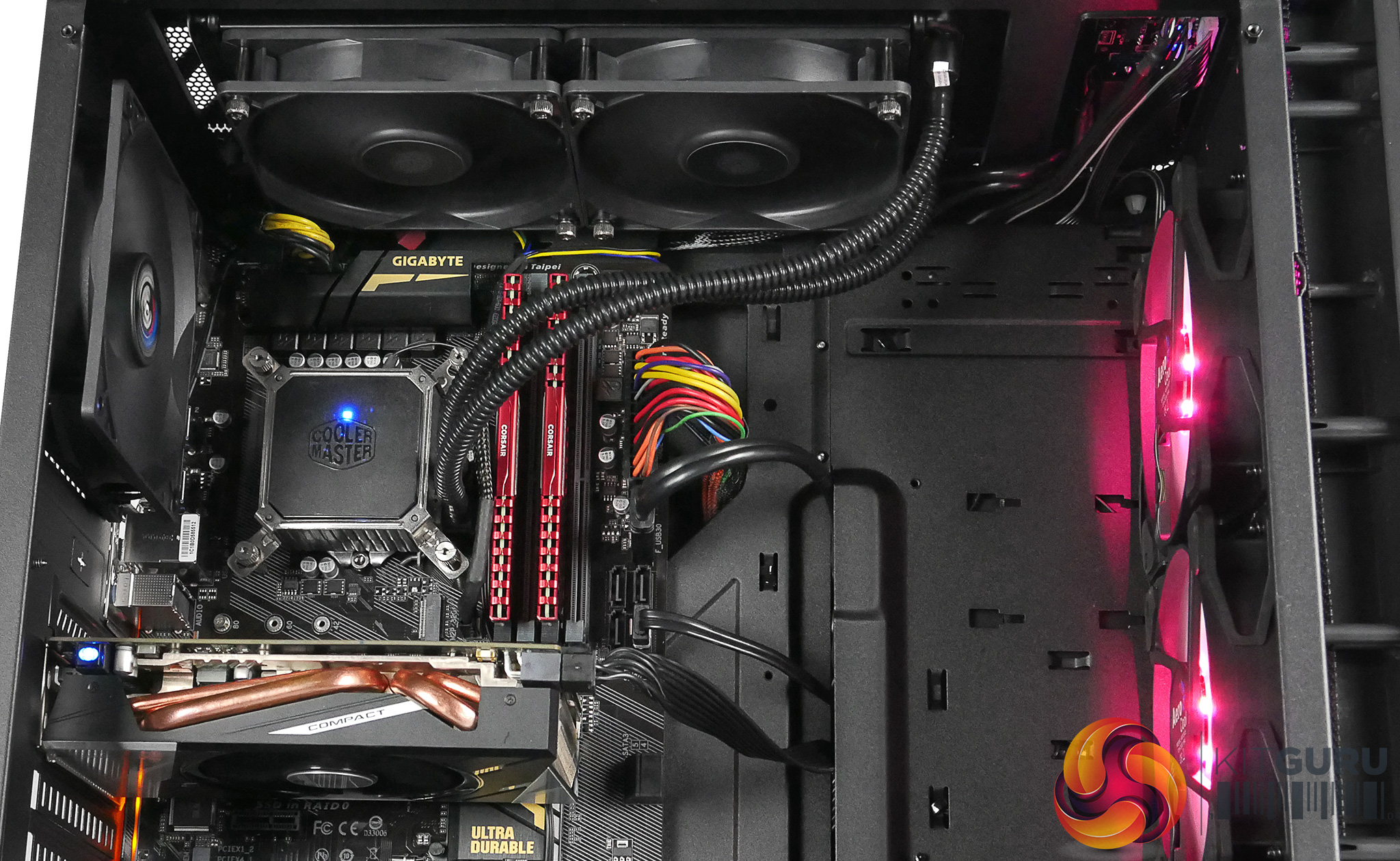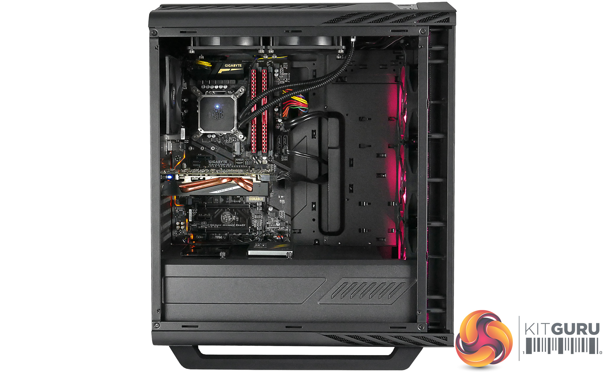 The chassis has plenty of airflow to control internal temperatures but it is hugely disappointing that it can't accommodate bigger cooling options. They could have taken the PRO design one step further and incorporated bigger radiator support across the top.