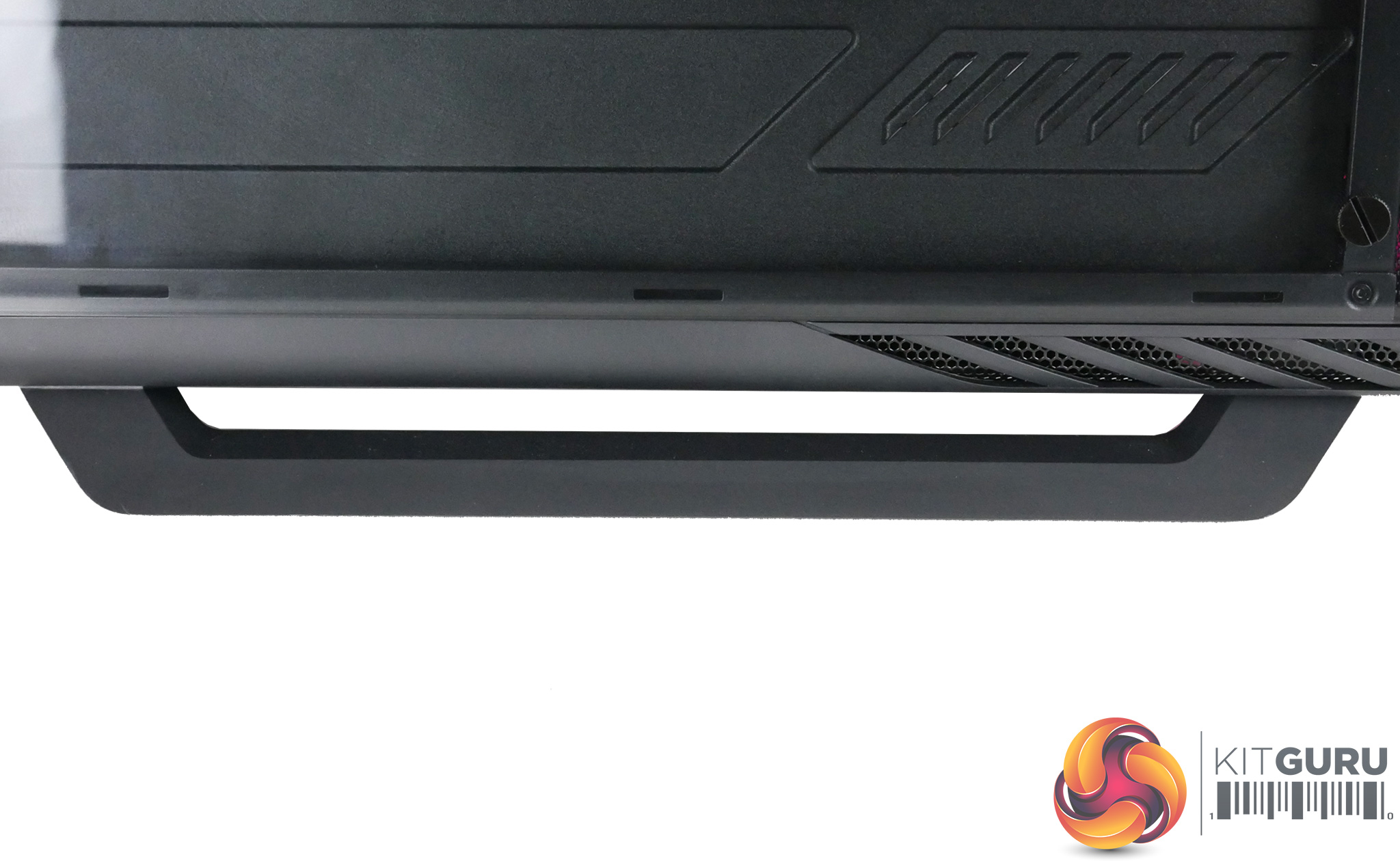 If we move to the bottom of the case we find air vents for the power supply with a removable dust filter. Getting to this dust filter is a chore more so than the front filter – you must first remove the front panel , then unscrew the feet and the bottom panel only then will it slide off giving you access to the dust filter.