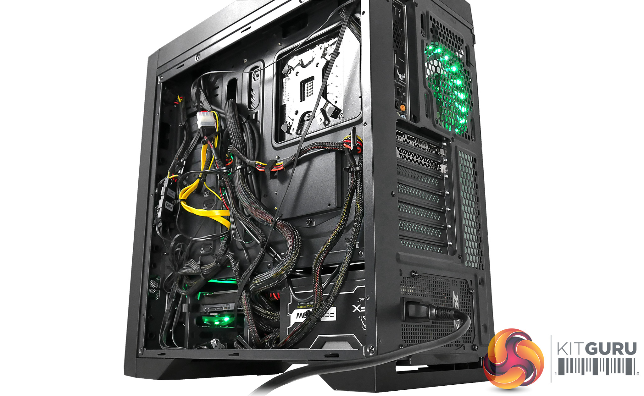 Moving to the cable management area on the right side we have a lot of room to manoeuvre. Cable routing is simple as there are multiple routing holes for getting the cable through to the components. There is also space for an additional 2.5 hard drive right below the CPU cut-out.