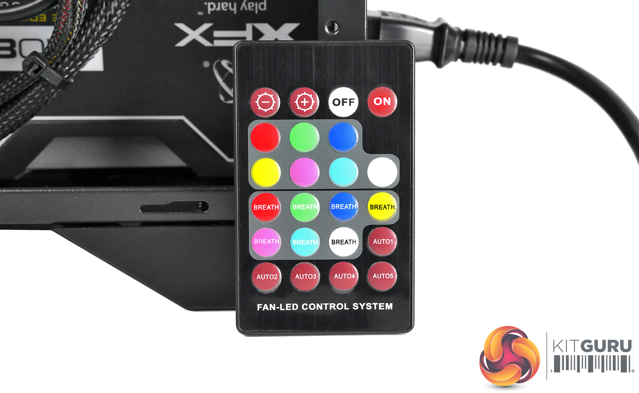 Unfortunately the remote is cheaply made and has a bad recognition sensor. Unless you point it directly at the sensor it will not work. Game Max recommend that you mount the sensor in between the mesh front plate and the fans. This did help but not enough to ensure it would always work – even from a couple of feet away.