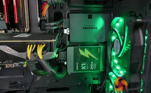 On the window side of the case you can mount two 2.5 hard drives in front of the graphics card. I find it strange Game Max never offered any mounting holes on the power supply shroud as I feel this would be an easier way to access the hard drives.