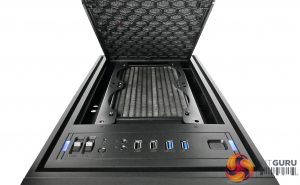 Installing the radiators and fans is made simple by the fact the two metal meshes located at the top and bottom are removable by just pressing down on them – this is much more convenient than removing the entire top panel.