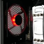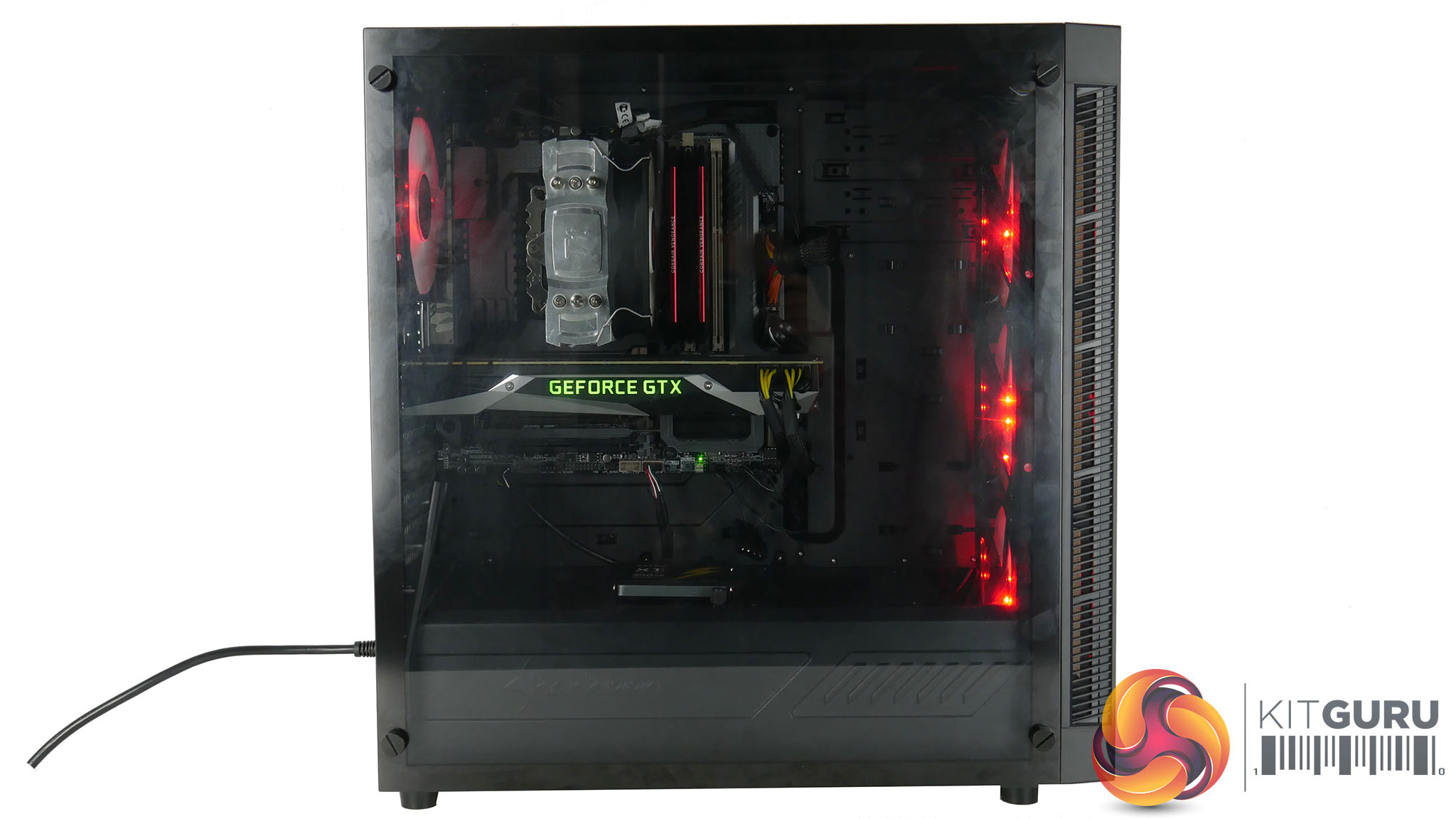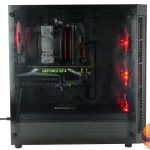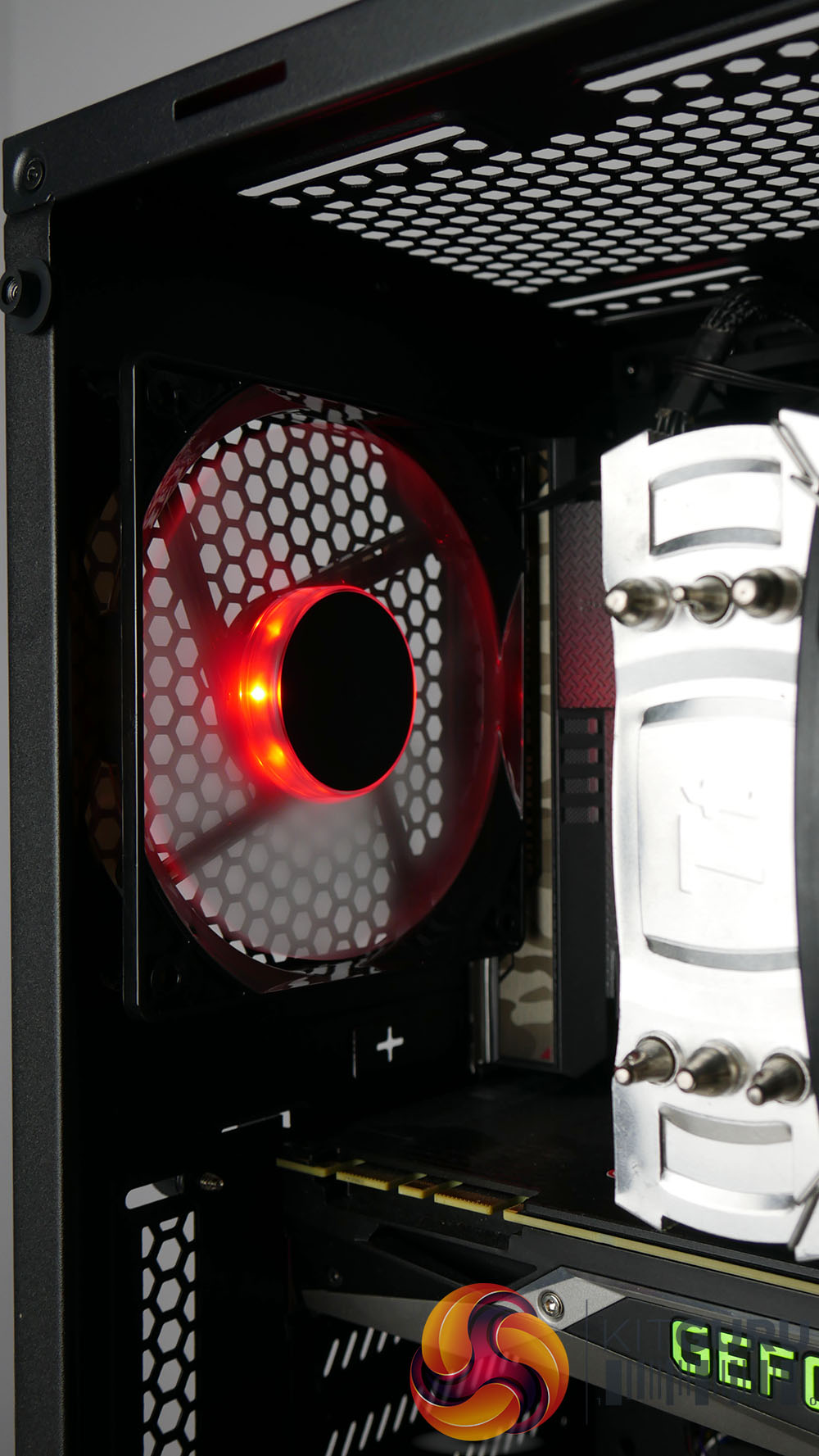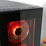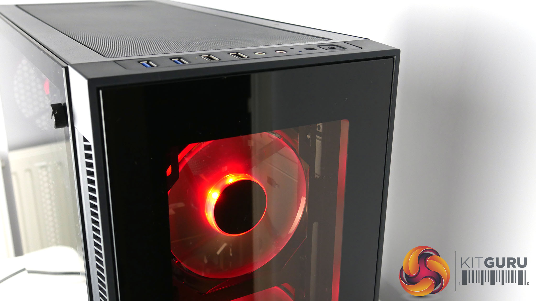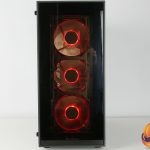 Along the front is a huge tempered glass window which highlights three of the four included fans that ship with the case. The case options include multiple fan colours – red, blue, green and white. Moving to the left side of the chassis we see a huge glass window that displays the entire interior. Both glass panels have black frames embedded into them which is a nice touch as it highlights the components nicely.