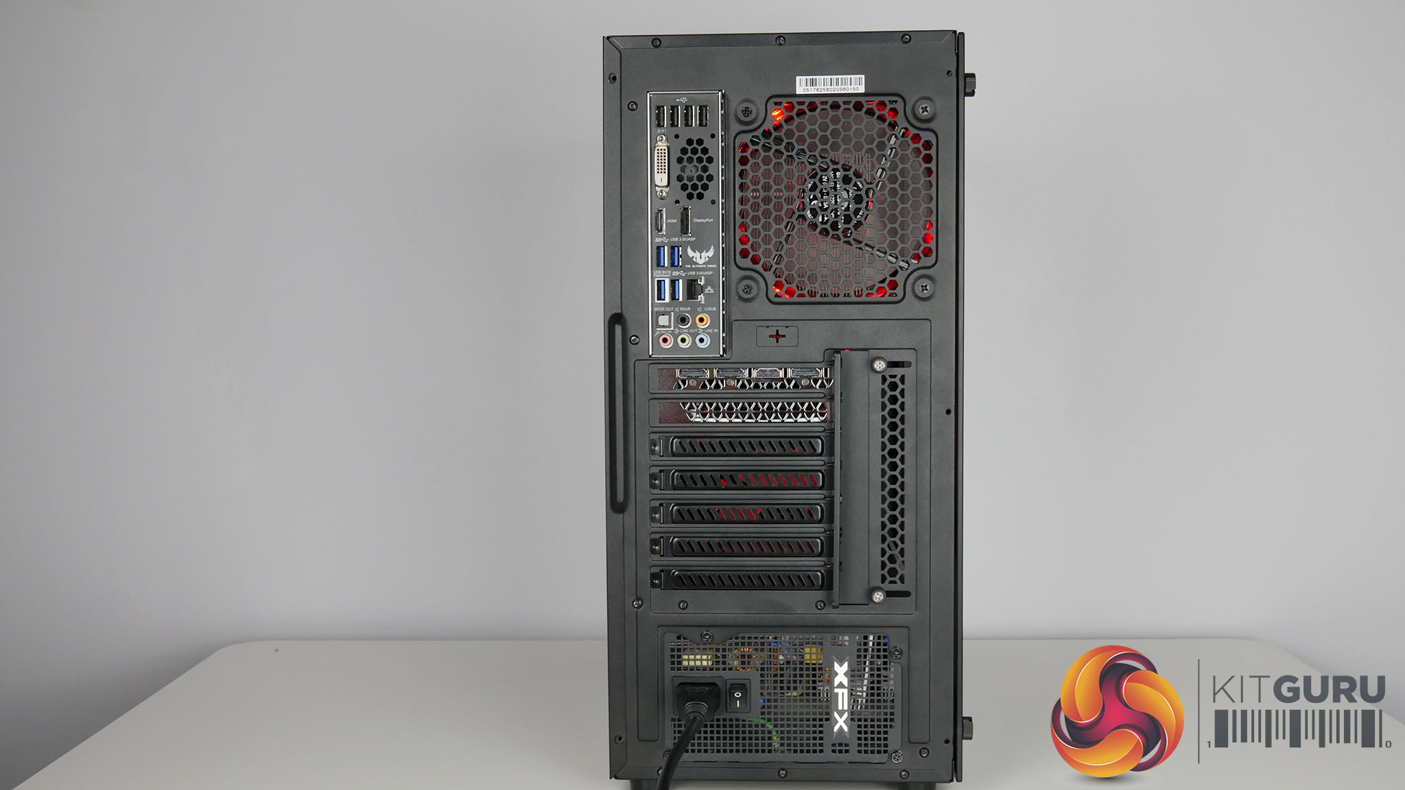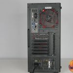 We can see that the right side of the case is constructed out of thin steel and a slide off panel which is held in place by thumbscrews. The back of the case has a traditional layout with a 120mm fan placement on the top, the IO placement, the 7 PCI brackets and finally the power supply cut out.