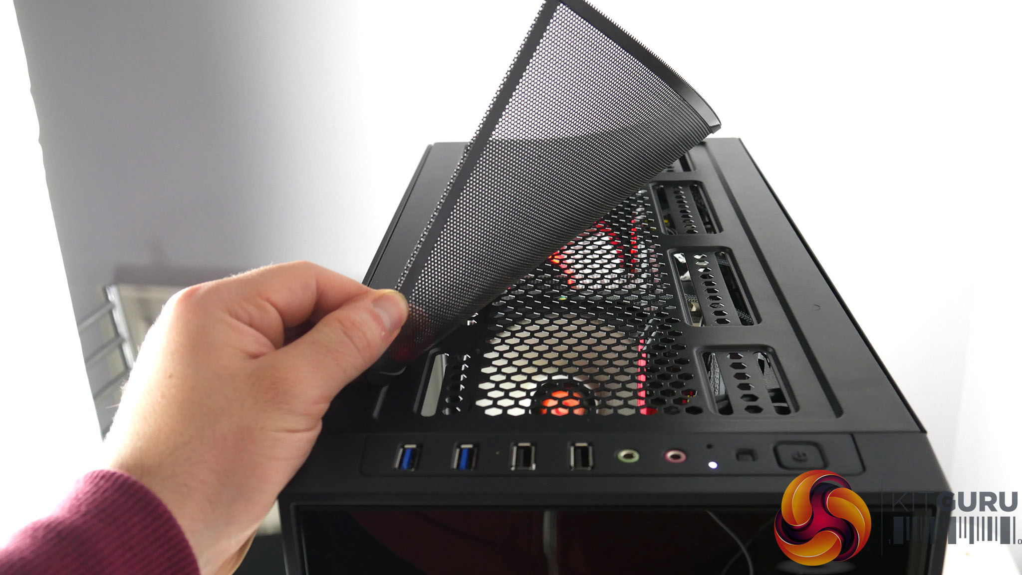 On the top of the case there is a magnetic dust filter which also acts to conceal the vents and mounting holes at the top. The front is made out of plastic and has vents all along the side improving air flow and also has 2 removable dust filters. There is also a removable dust filter on the bottom for the power supply. When you move onto a front view of the case things get interesting.