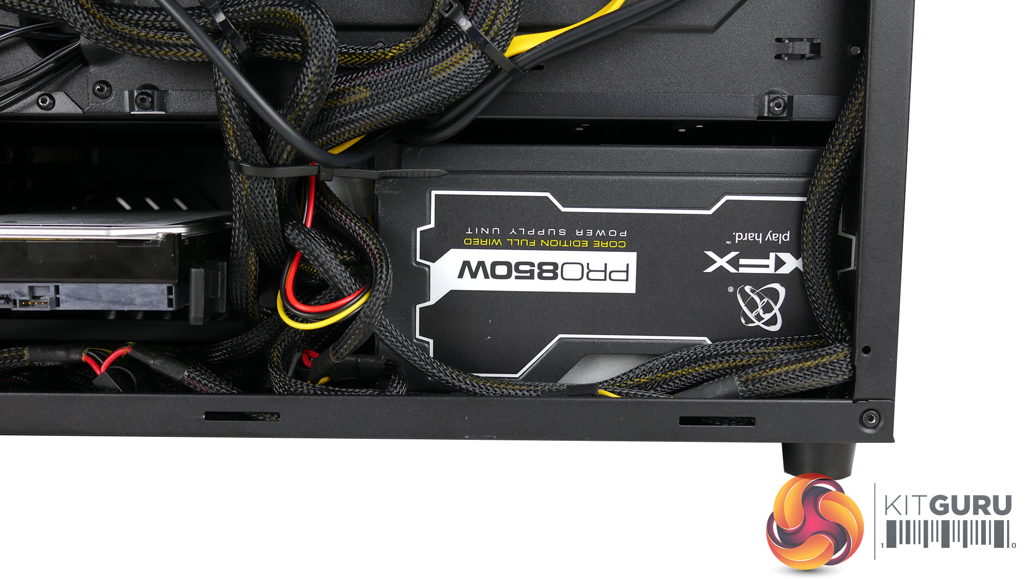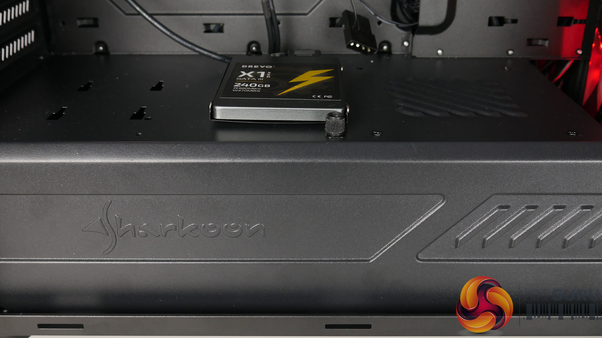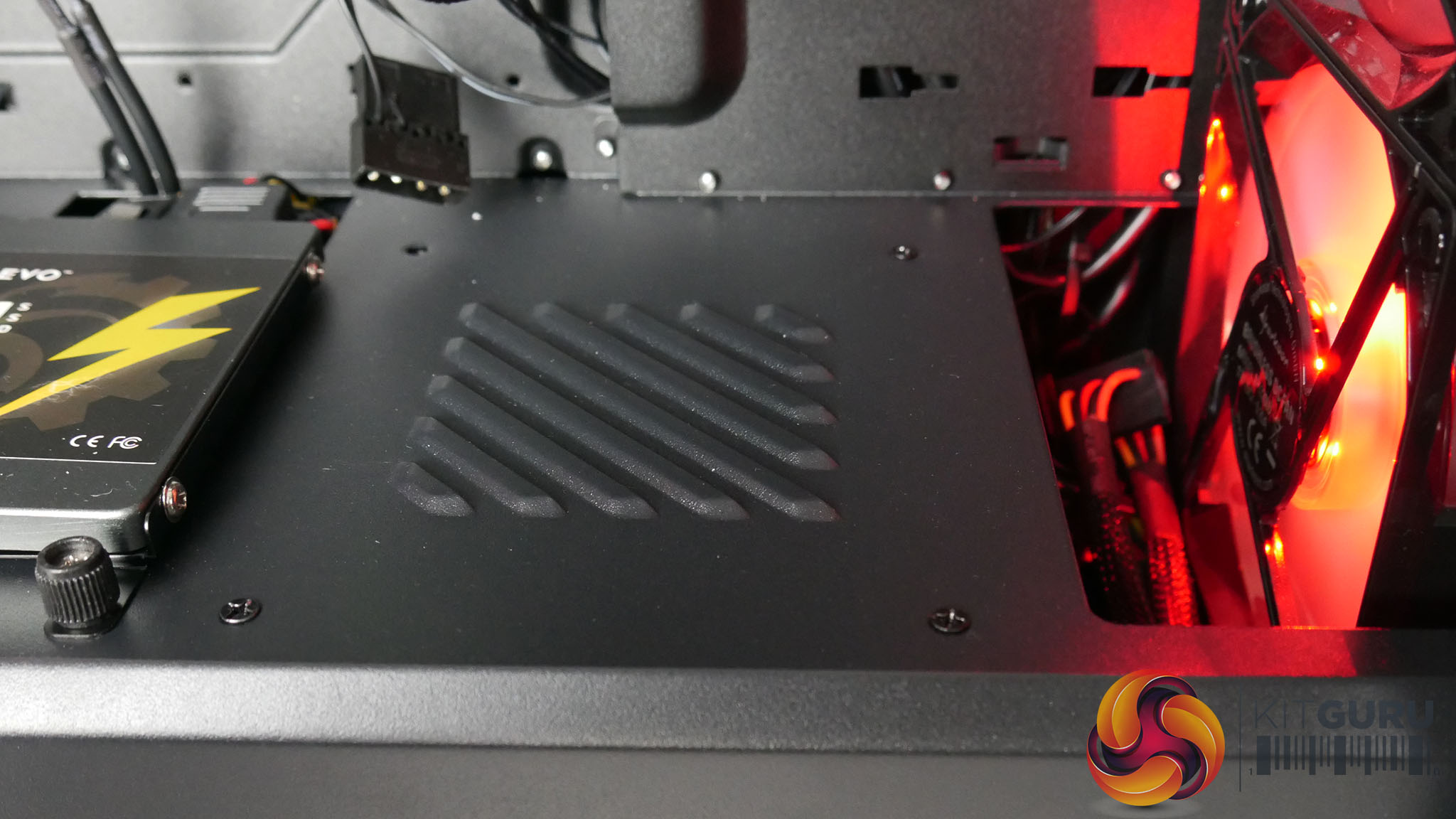 Once inside the case you can see the power supply shroud which can store up to two 2.5 SSD drives on top with the same slide on the bracket mentioned earlier. There is plenty of space to move around and plenty of space for high end components.