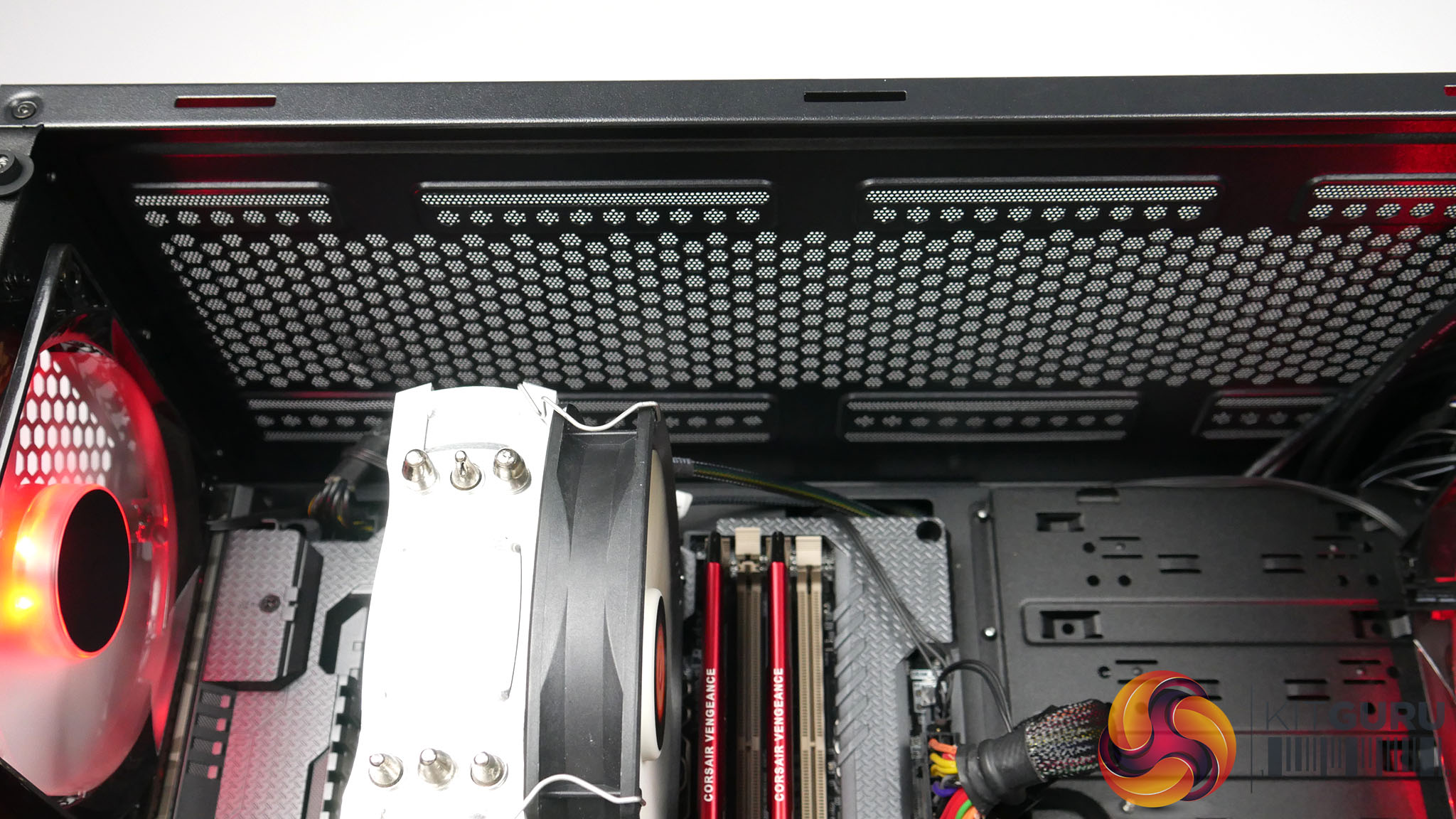 This case supports radiators up to 360mm in the front (with a 55mm depth restriction including fans) and a 120mm radiator at the back. There are mounting holes at the top of the case for up to three 120mm fans or up to two 140mm fans. You could also mount a radiator here as well, with some caveats which I shall mention later.