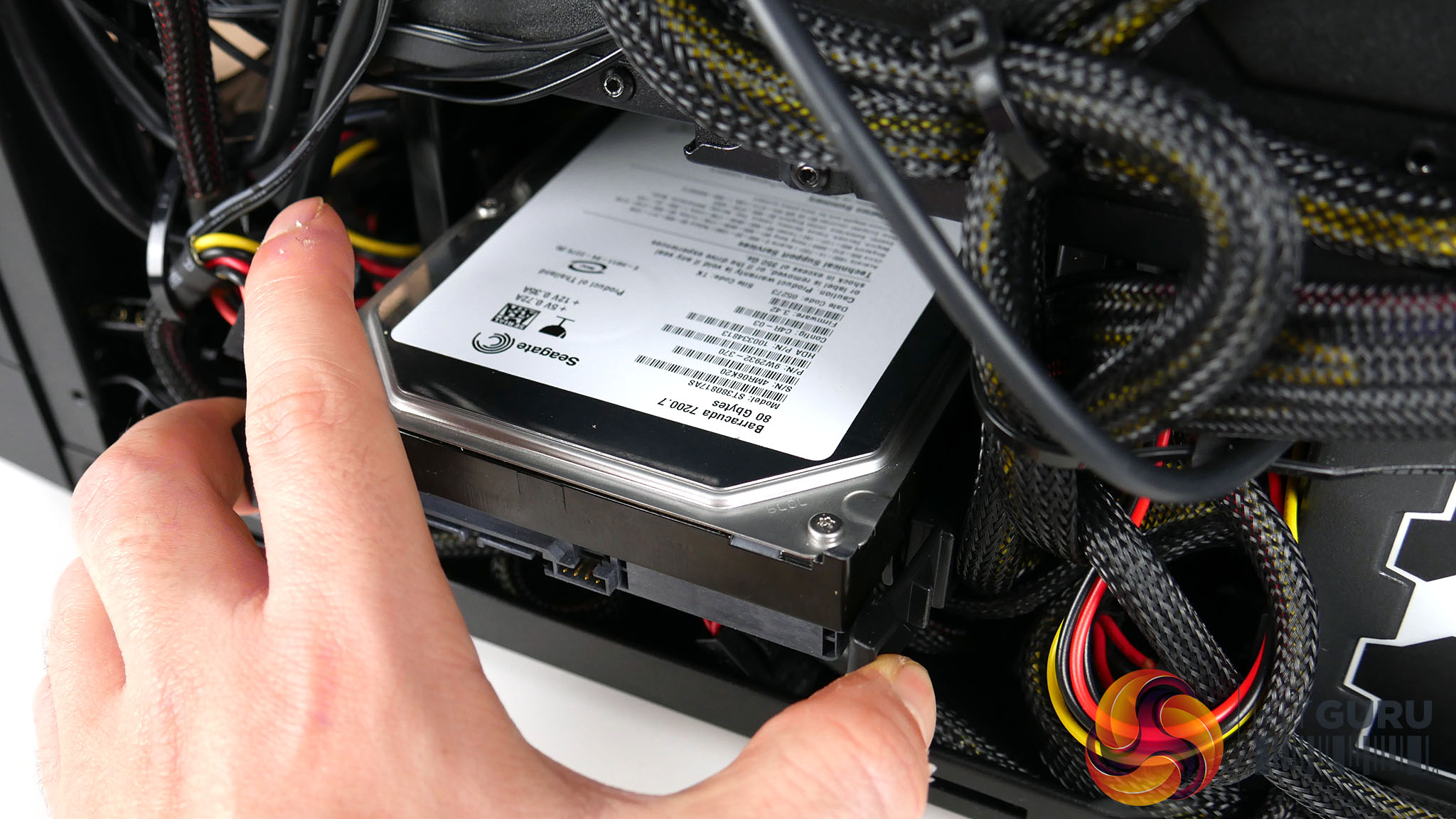 Just screw the HDD to the bracket then slide the bracket in securely and lock with a thumbscrew. Nice and simple.