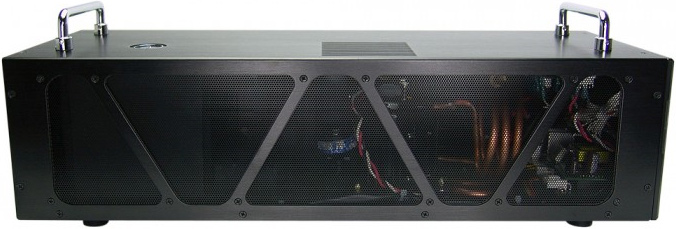 Koolance's EXC-450 is an extremely compact (152mm*203mm*533mm) portable recirculating liquid chiller rated at 450W, or 1535 BTU/hr @25°C liquid & ambient. Chiller can cool-down coolant to levels below room temperature (1°C is the lowest temperature), which is considerably more efficient than any mainstream air or liquid cooling. The device consumes up to 230W and requires its own power supply unit. Koolance requires usage of its own coolant liquid, otherwise the cooler loses warranty.