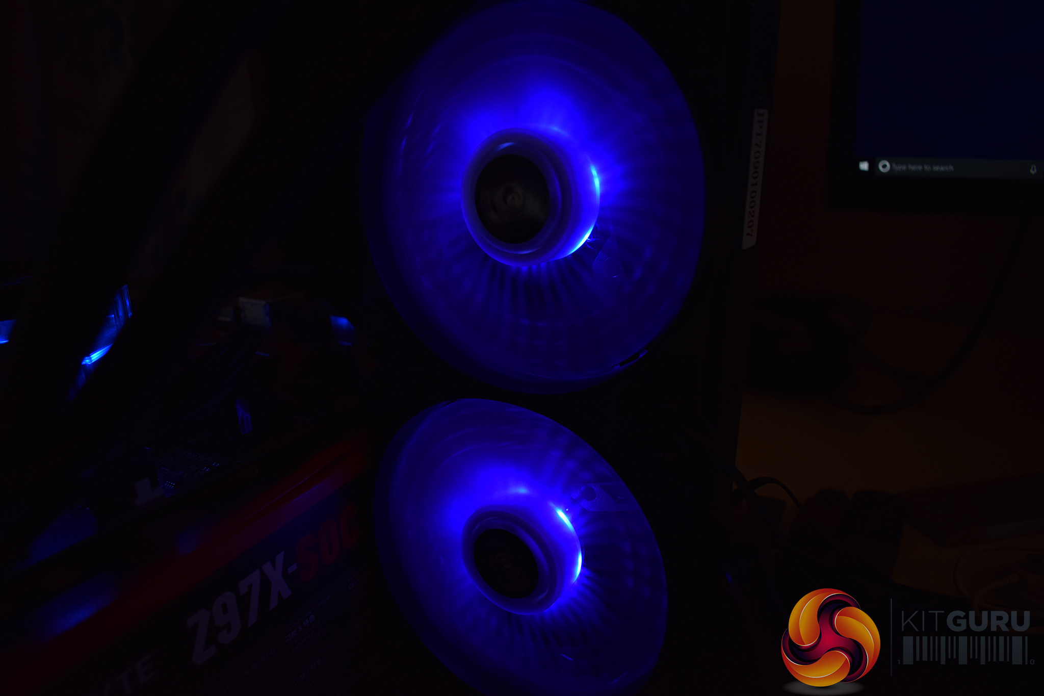 However, and this is quite a significant oversight, there is no RGB controller bundled with the P7-L240, so if you don't have a RGB-capable motherboard then you are be out of luck. Our test Z97 motherboard does not have any RGB headers, but as it happens I managed to dig out a RGB controller from Cooler Master no less to get the lights to work.