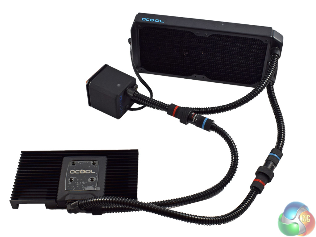 Lastly, this image shows the Eisbaer expanded to fit a GPU block as well. All you need are two extra 11/8mm PVC hoses with the compatible quick-disconnect fittings, and the GPU block. The quick-disconnect fittings simply screw off and on.