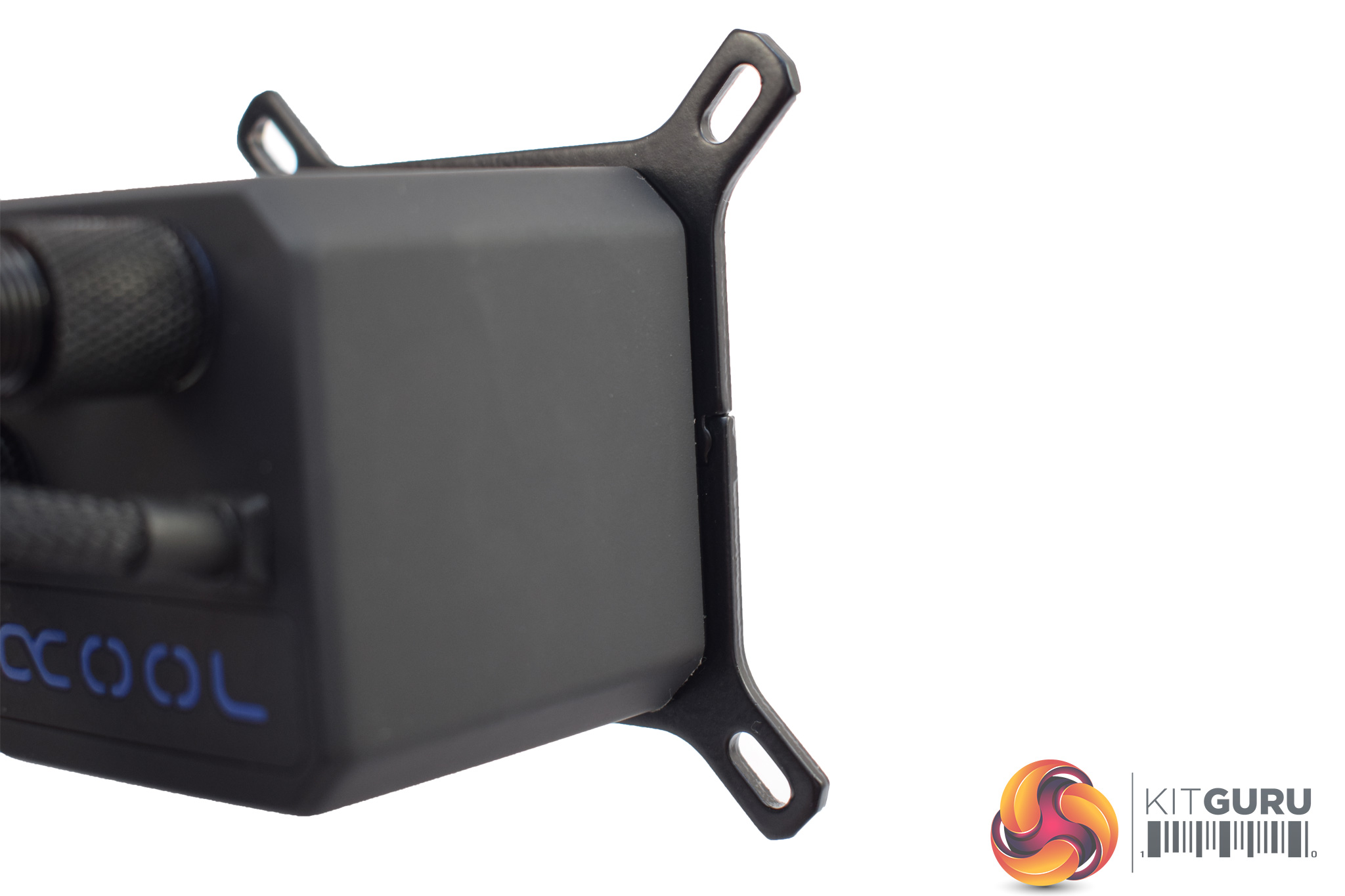 After that, our Intel bracket needs to be clipped onto the pump – it comes in two pieces, so align them up and push them together and they will lock in-place.