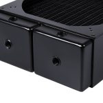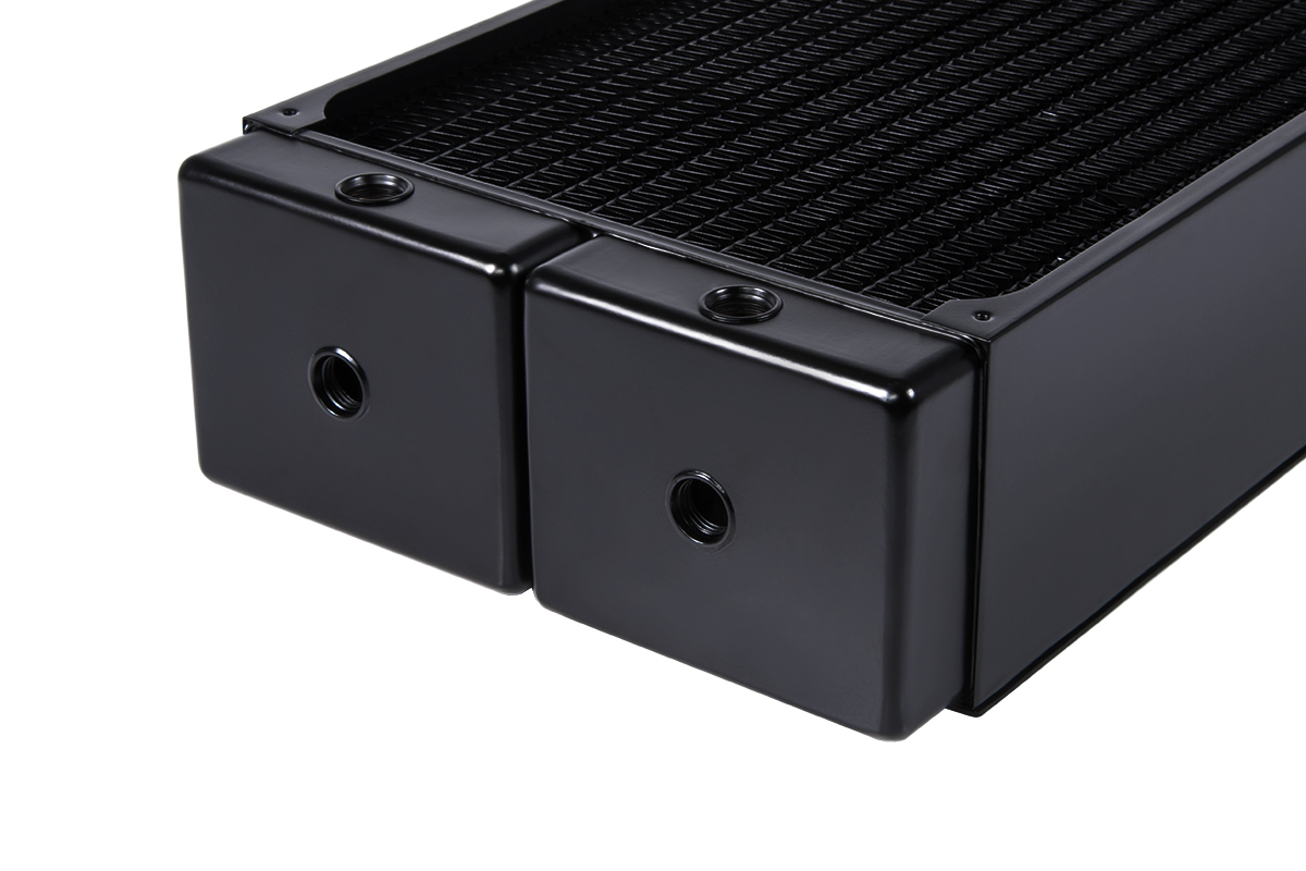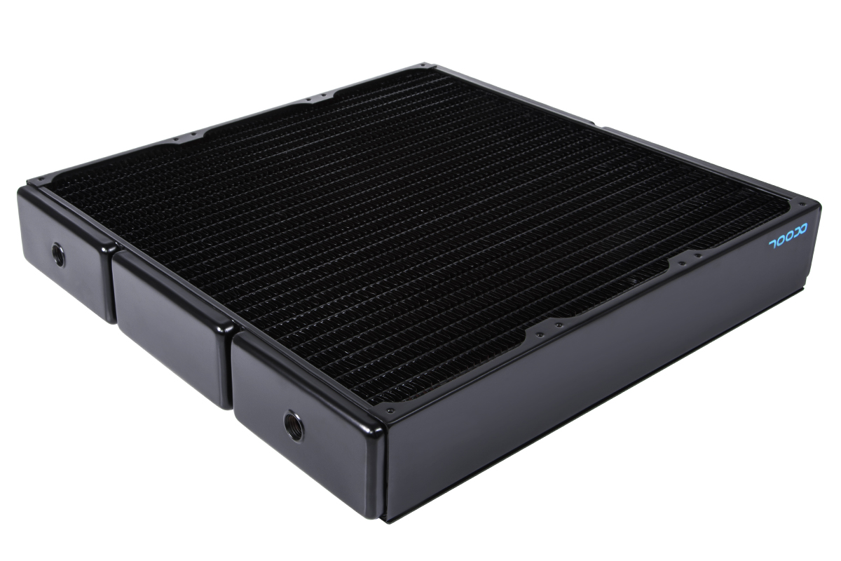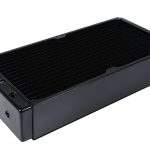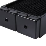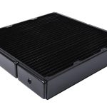 The total size of the radiator is 37.8 x 36 x 6.5 cm (LxWxH) and it weighs over 3KG alone, at 3370g. It sports a fin density of 12FPI with 3x G1/4″ fittings.