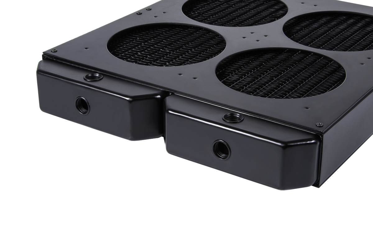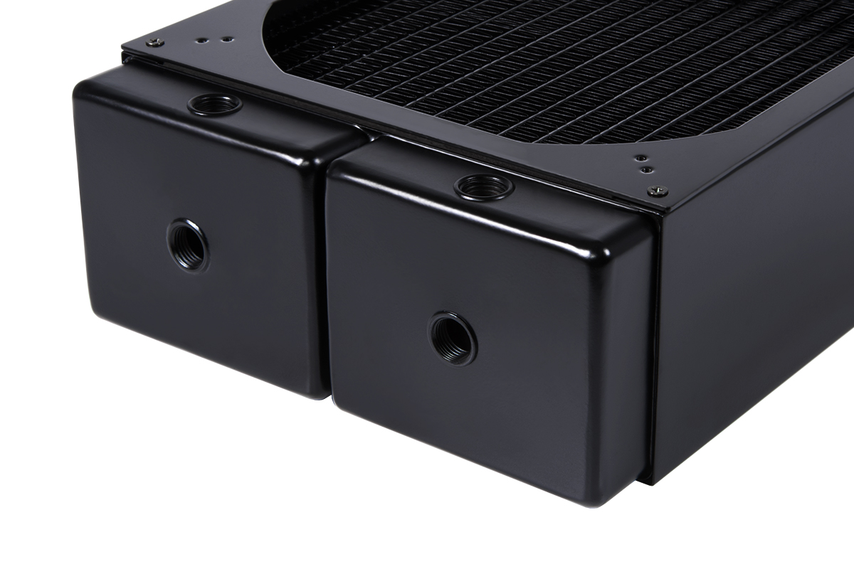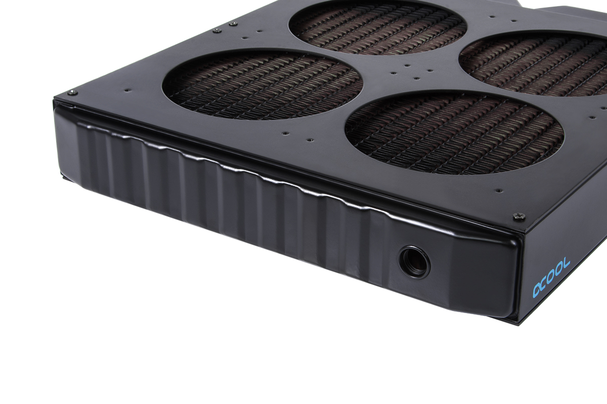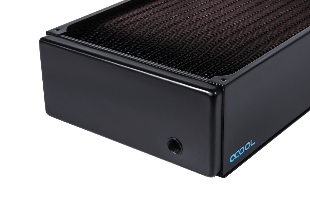 For all of its radiators, Alphacool says that all ‘water bearing parts' are manufactured out of copper, including the cooling channels and fins. The threads are made of brass, as apparently copper is too soft, while only the side plates of the radiator and the mounting plates are made of steel.