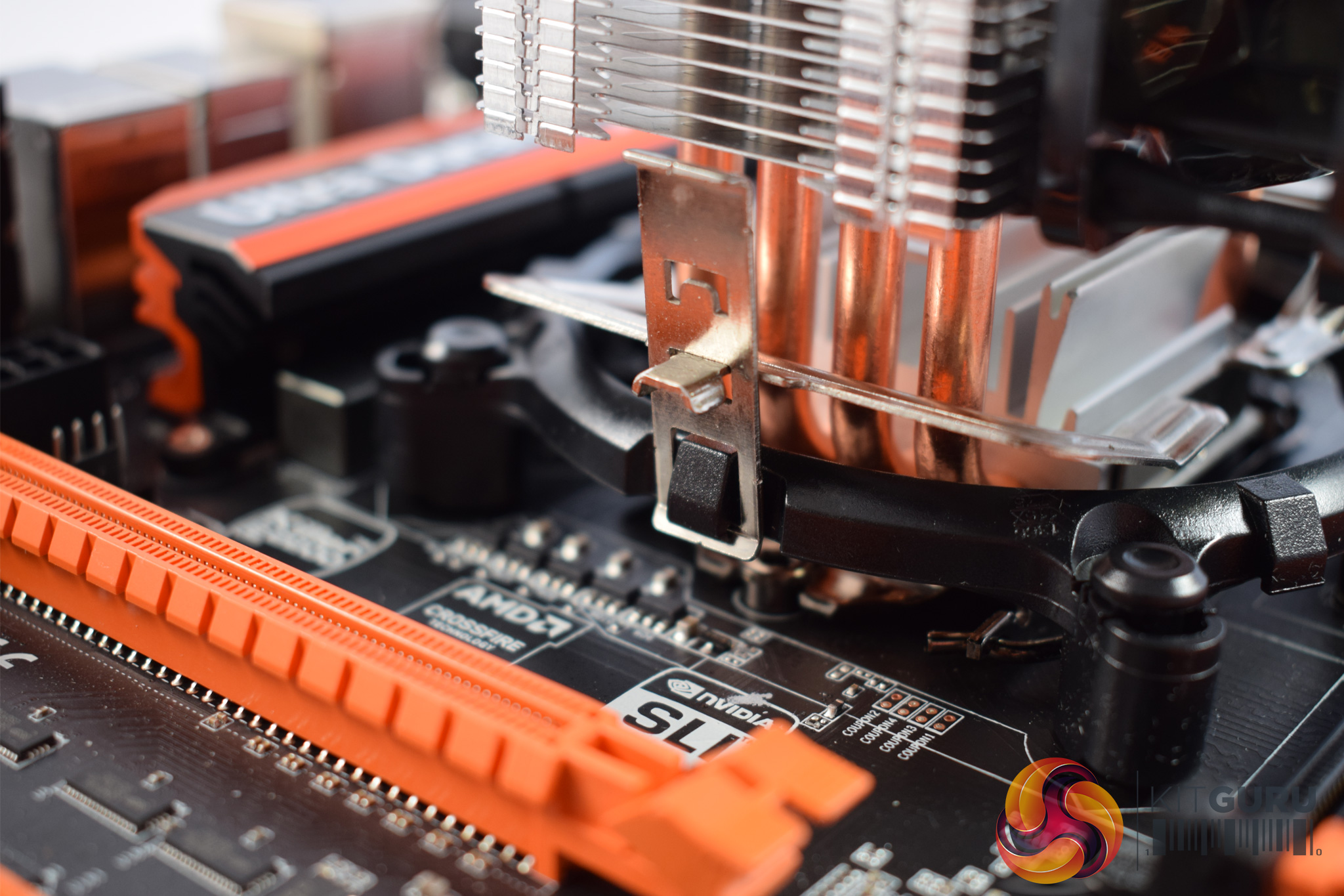 With the bracket now secure, users can apply thermal paste and mount the cooler. The cooler has two small metal clips on either side, pre-installed, and these just need to be locked to the bracket's mounting points.
