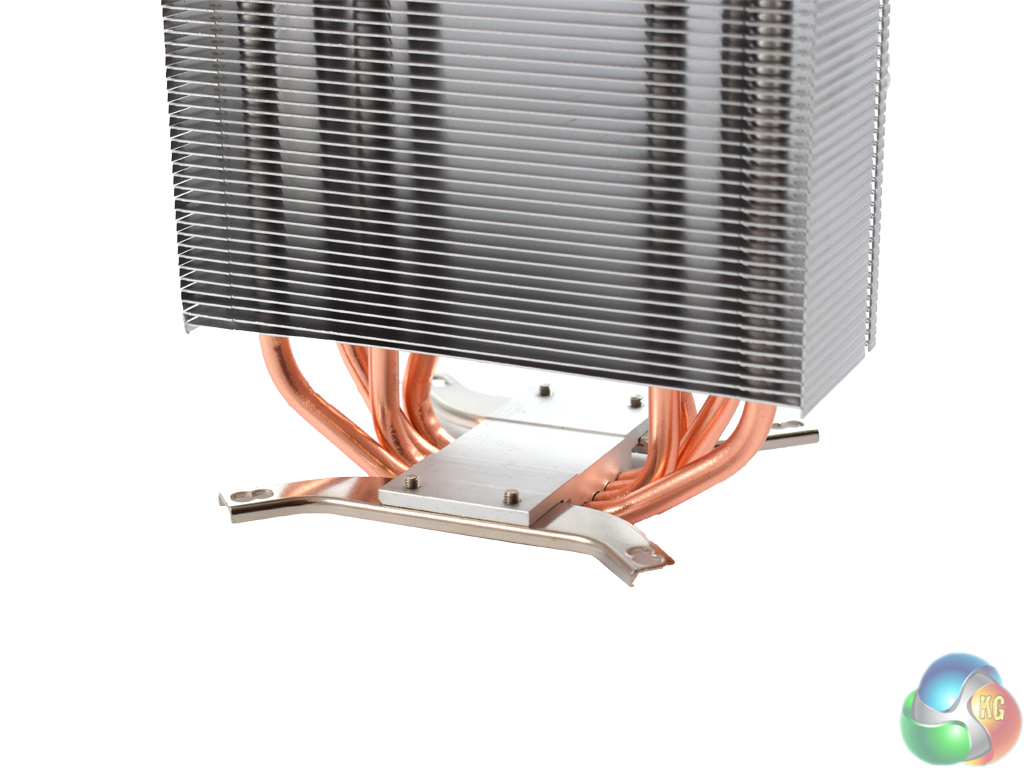 Next, the mounting brackets need to be screwed to the base of the cooler. Flip the heatsink upside-down and align the brackets with the screw holes on the base of the cooler. Then, simply screw each bracket in place – the smallest four screws are the ones you want.