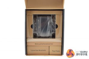 Also inside the box is a set of extra fan brackets – these support 120mm fans, while the pre-mounted brackets support 140mm fans. It is good to see Cooler Master have provided the extra fan brackets, as this lets you use your choice of 120mm or 140mm fans.