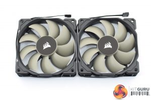 Given the H100x is a 240mm liquid cooler, we get 2x 120mm fans in the box. These are from Corsair's SP (static pressure) series and have the characteristic off-grey fan blades that we have come to expect from Corsair liquid coolers.