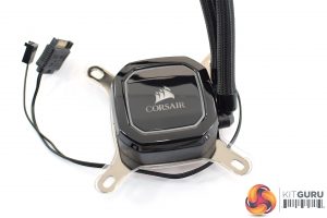 Despite the fact that the cooler is manufactured by CoolIt, Corsair has still been able to keep the cosmetic pump housing design as those coolers mentioned above. It is worth noting, however, that the H100x is not an RGB cooler – the pump glows white and white only. Lastly, the pump is powered by a SATA connector, while there is also a 3-pin connector for measuring the pump's RPM.