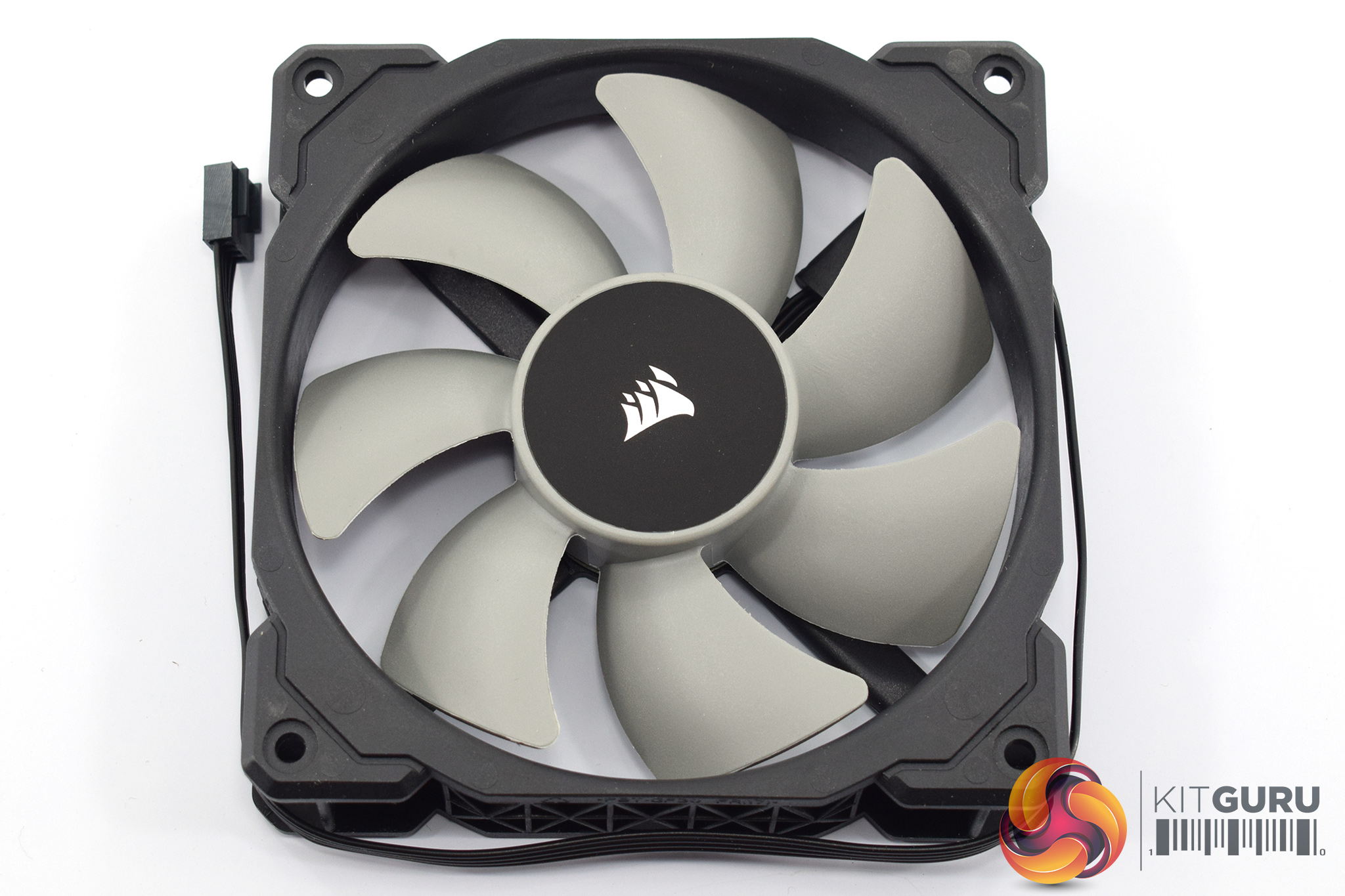 The three included fans are from Corsair's successful ML series, and each has a maximum speed of 1600 RPM. They have kept the classic black and grey colour scheme of previous Corsair radiator fans.