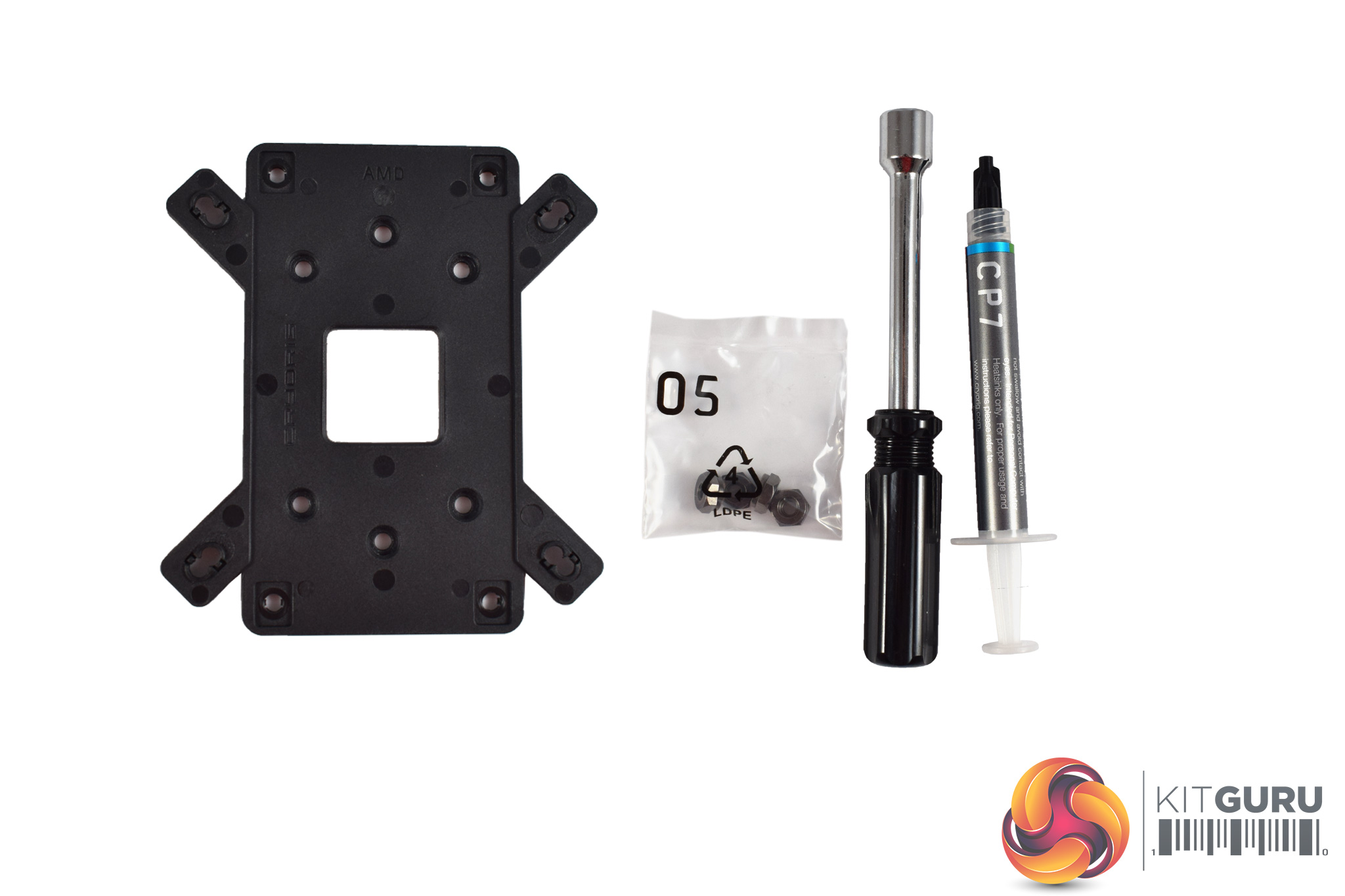There is not a lot of installation hardware for the C7, as all you get is a backplate, some nuts, a special screwdriver and some thermal paste.