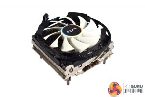 It is quite attractive though, with an aluminium body that contrasts nicely against the black-and-white low-profile fan. The fan also sports a colourful ring around the Cryorig logo which definitely adds some interest.