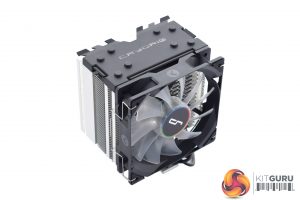 The 120mm fan has also been tweaked – here it is an LED model, though it is white-only, not RGB. Speaking of LEDs, the Cryorig branding on the cooler's top-plate is one RGB lighting zone, while there is also a small LED strip positioned on the base of the cooler which should create an underglow effect.