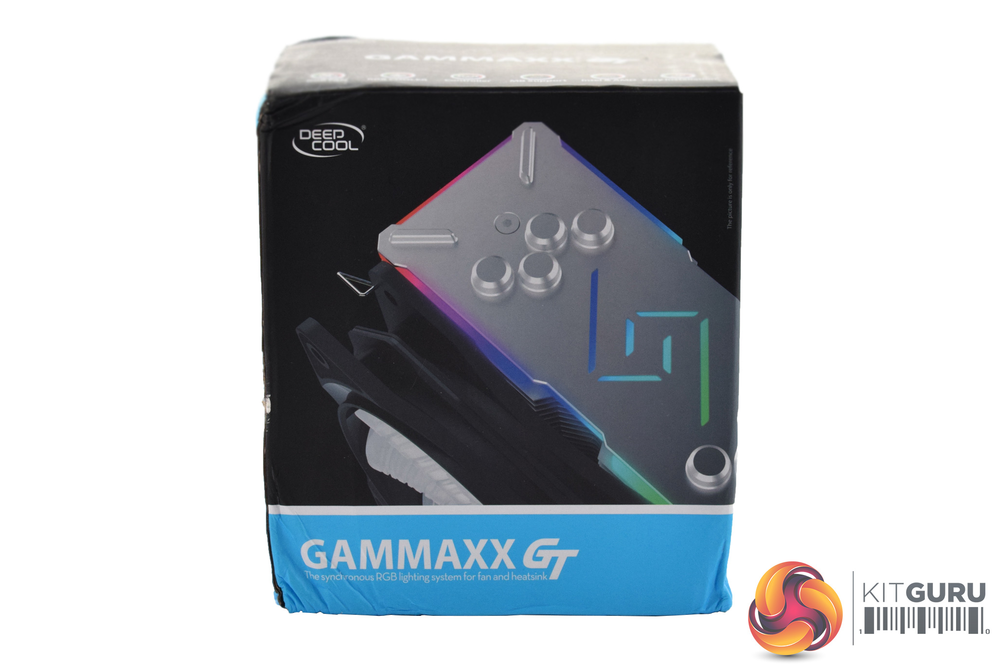 The Deepcool Gammaxx GT ships in a colourful box that sports a large product photo on the front – and you can definitely tell this is a RGB air cooler.