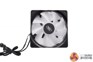 Elsewhere, the included 120mm fan is RGB capable, and accordingly has two cables – one standard 4-pin PWM cable and one 4-pin RGB connector.