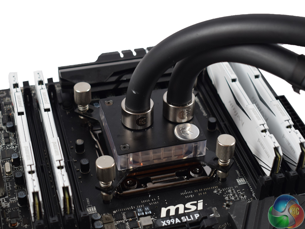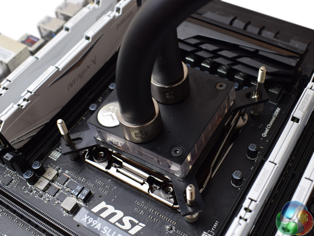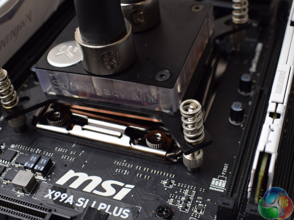 To finish the process, simply use the four thumbscrews to secure the CPU block in place.