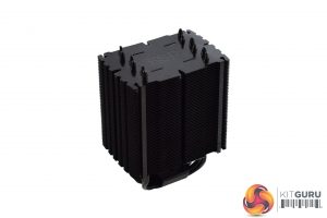 The heatsink itself is definitely well-sized, measuring (LxWxH) 122 x 110 x 165 mm, and it is very black. It is made from an aluminium alloy and sports 6x 6mm heatpipes (hence the name, Windale 6).