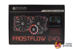 The ID-Cooling FrostFlow 240L ships in a dark box, with a large product photo visible on the front.