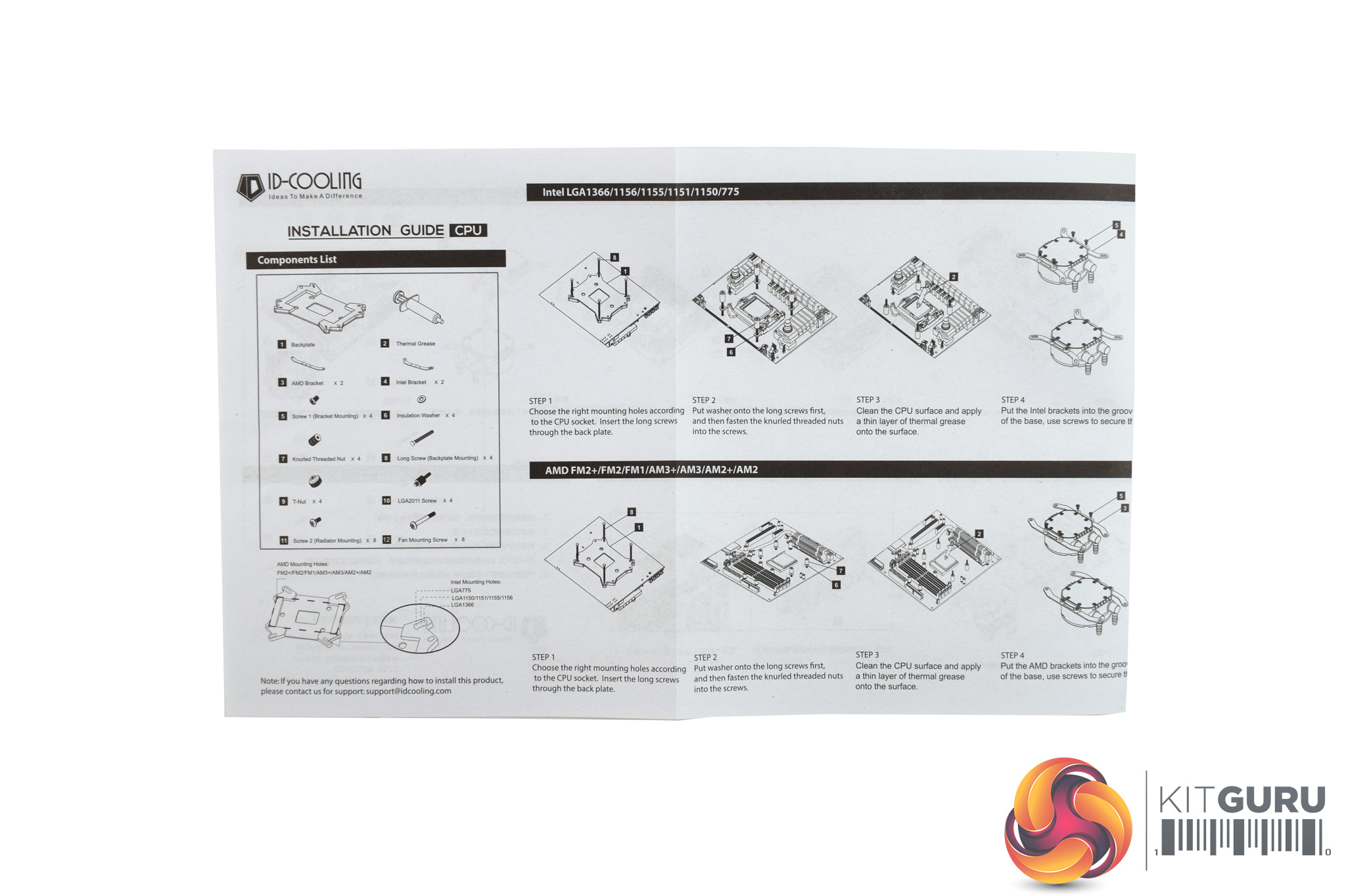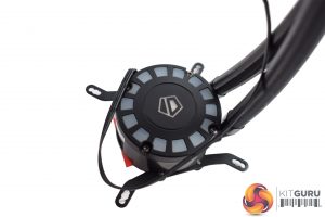 The pump is a bit more interesting as it features several LEDs around the outside, while there is also a small ID-Cooling logo in the middle. The pump is powered by a 3-pin fan header.