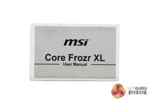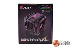 The MSI Core Frozr XL ships in a dark box with a large product photo on the front.