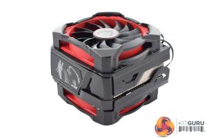The cooler itself is a very chunky unit, measuring 150.4 mm x 170.0 mm x 129.8 mm (DxHxW) with both fans attached – which, incidentally, is how it comes out-of-the-box. The fans do attach using two clips on either side, though, so it is easy to remove one or both units.