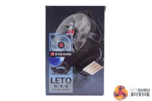 The Raijintek Leto ships in a pretty small box, while there is a large image of the cooler itself on the front.