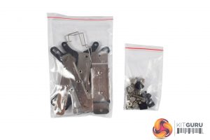 Inside, there are just two bags of installation hardware, though the contents are not labelled.