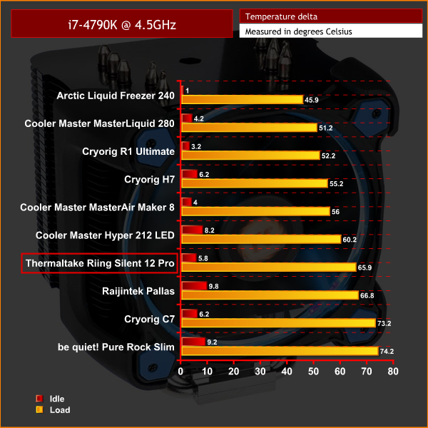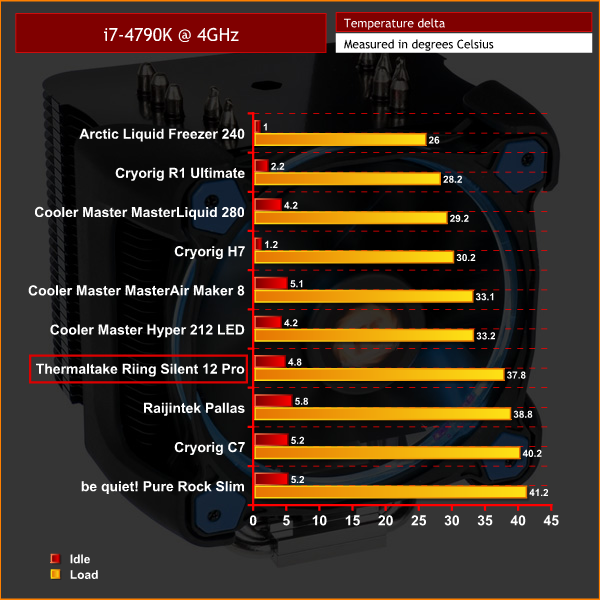 In terms of raw performance levels, the Riing Silent 12 Pro is very average. In both situations, it kept our CPU cool enough that we were not worried about thermal throttling – so it is fine in that regard – but it is also bettered by a few, cheaper alternatives. The Cryorig H7, for example, is around £8 cheaper but outperforms the ThermalTake cooler by a noticeable margin.