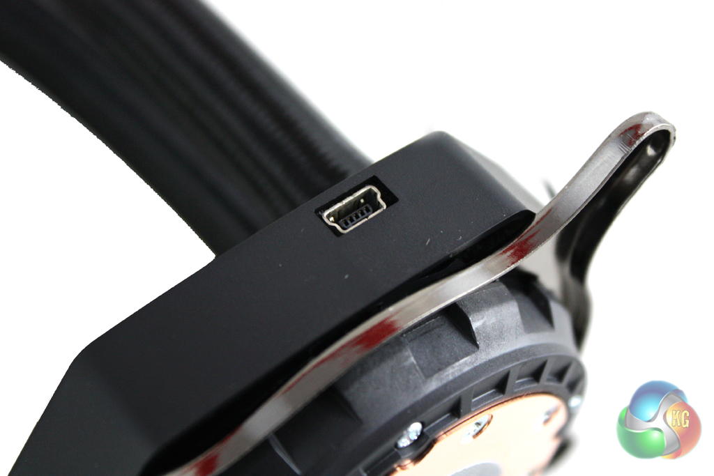 There is a mini-USB connector in the side of the CPU block which allows us to connect the cooler to our motherboard using a USB header. This enables the Corsair Link functionality of the cooler. We will go through this in more detail later on in the review. There are two fan sockets protruding from the block which let you connect the two fans to the cooler to enable Corsair Link functionality. It is worth noting that these would require fan splitters if you plan to add a pair of extra fans in a push-pull configuration.