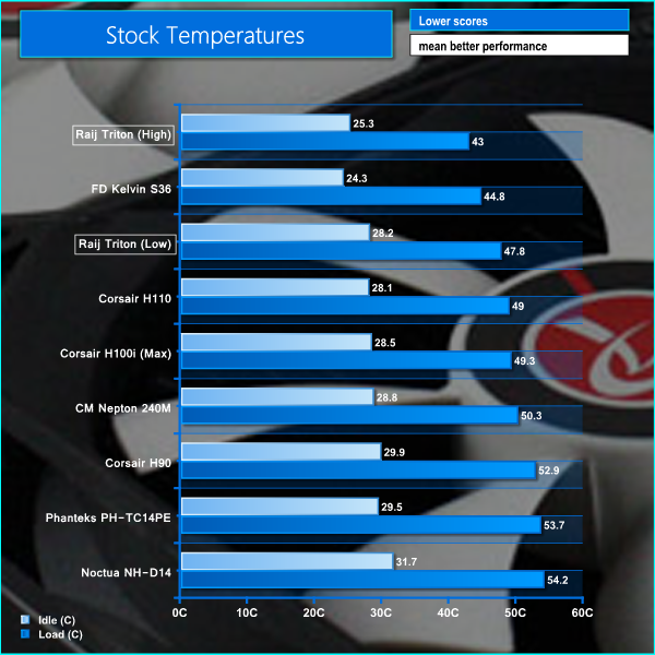 These temperatures are very impressive, showcasing the capability of this cooler. It is quite clear that it struggles a little with low airflow when overclocked as the temperatures were significantly affected in the low fan speed test.