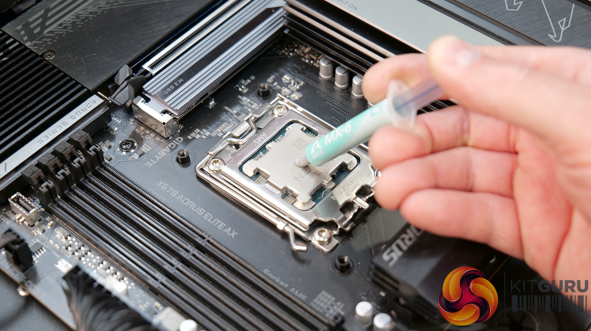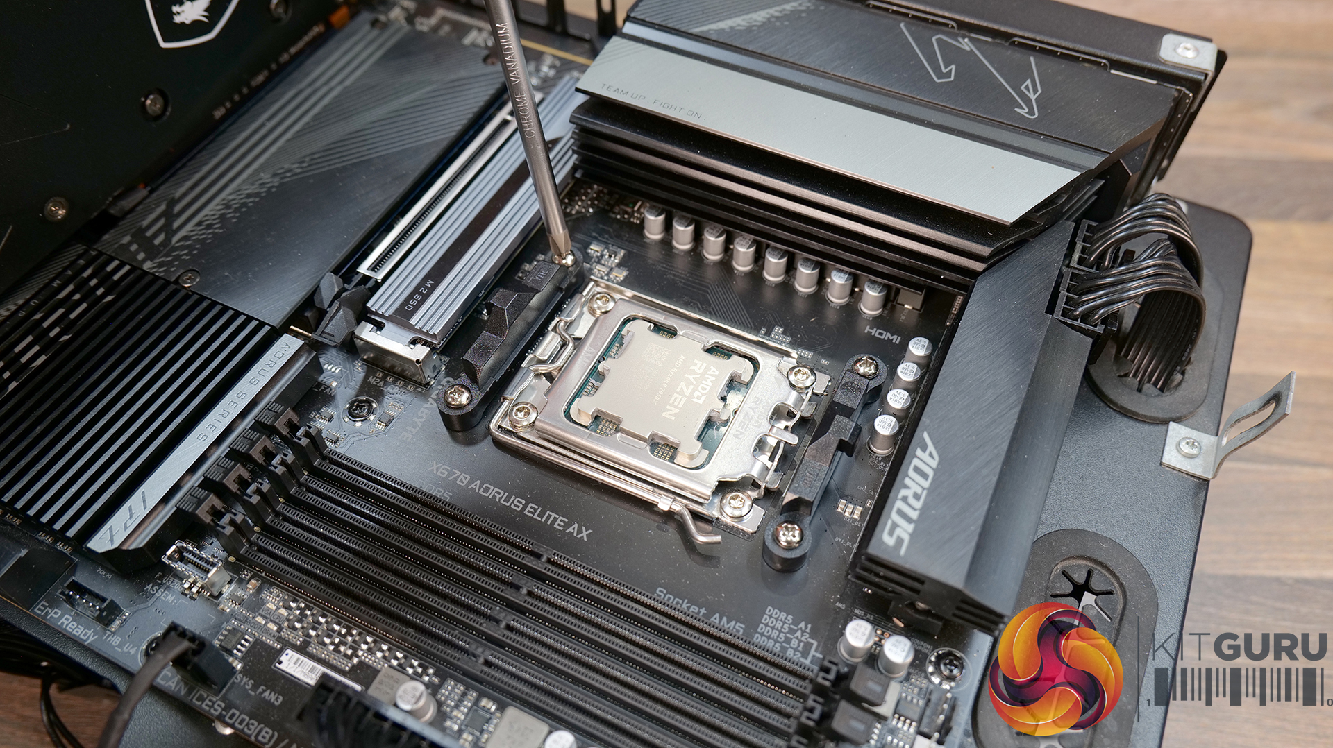 First remove the stock AMD upper mounting brackets from the motherboard. If it’s the first time installing there's no need to apply thermal paste to the CPU as Corsair ships the cooler with thermal compound pre-applied. However, we use Arctic MX-6 for testing so the stock thermal compound is removed and we apply it directly to the CPU heat spreader.