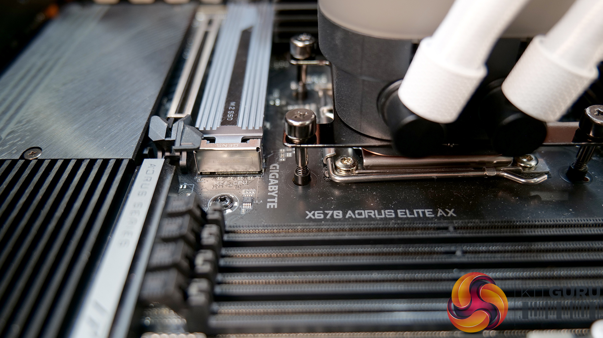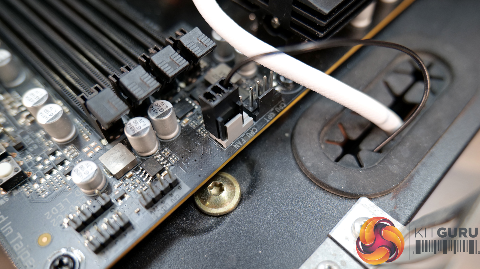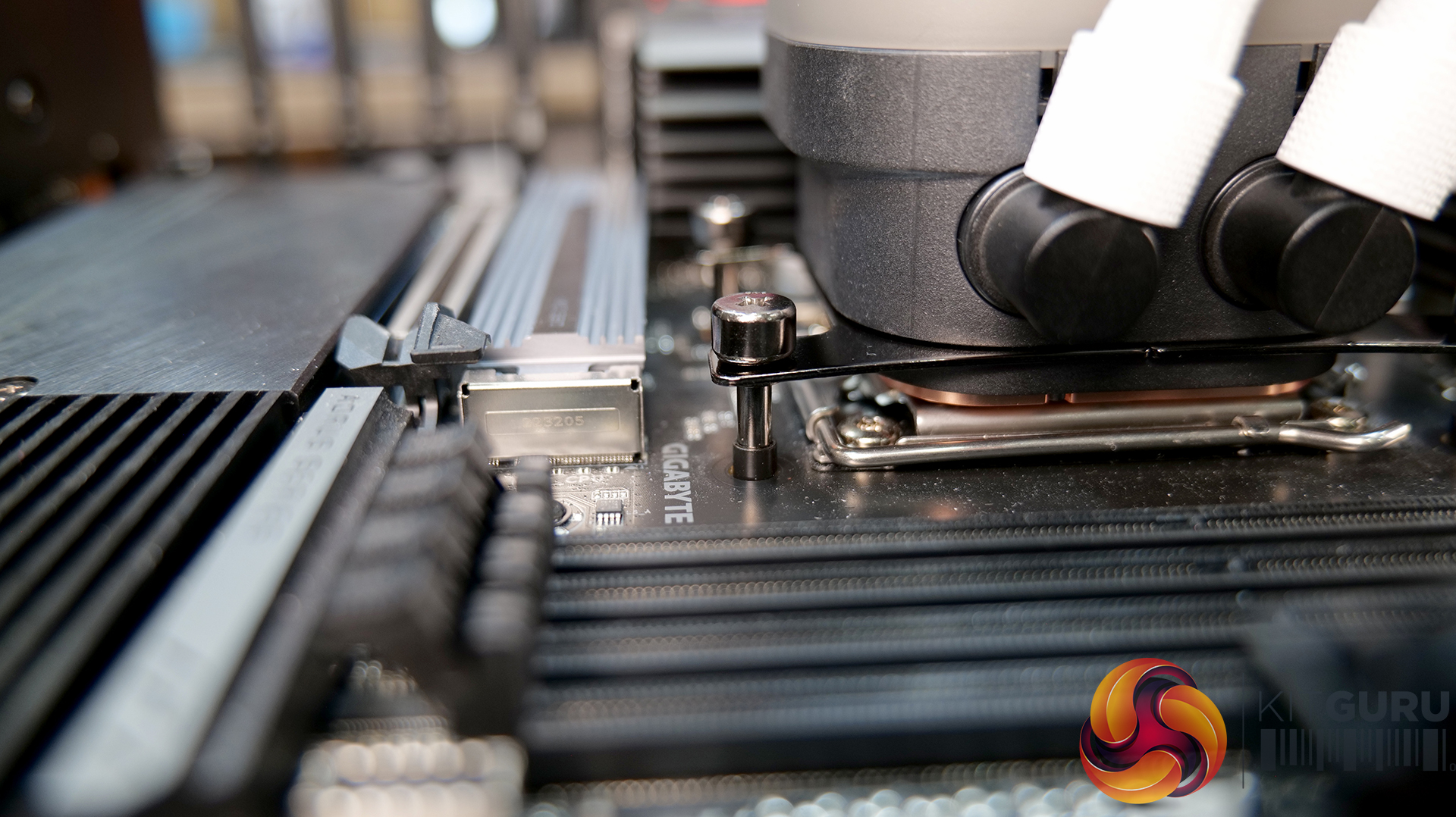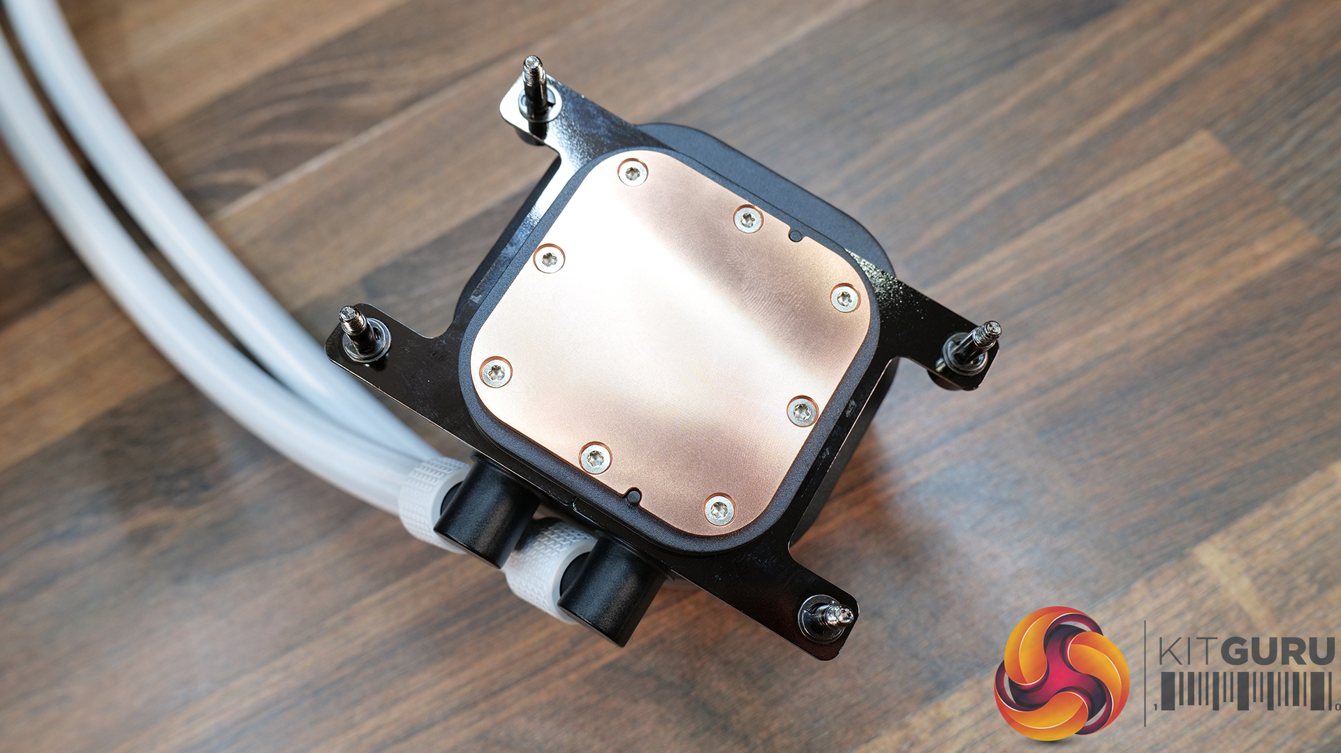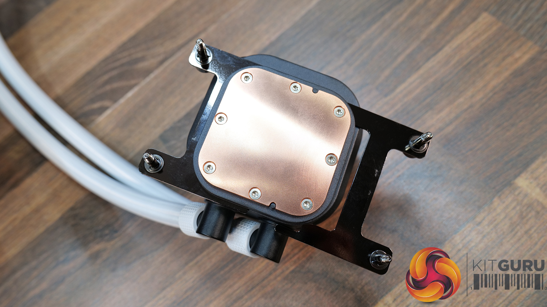 Next, locate the AMD upper mounting brackets from the accessories pack and slide them into grooves on the CPU block. They slot in place very easily and come with spring-loaded screws pre-installed which is a useful time saver.