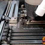 Now lower the CPU block into position over the CPU socket and align the bracket screws with the threaded boss on the corners of the stock AMD motherboard backplate. Tighten down the screws evenly and progressively for best contact. Note that the screw thread will bottom out on the backplate when fully tightened.